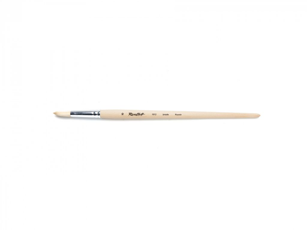 О серии: серия кистей «1612» представляет собой плоские кисти из щетины. В серии представлены кисти от №4 до №14. Характеристики: кисти серии «1612» производятся из специализированной щетины прошедшей обработку. Ворс щетины, используемый для художественных кистей, напоминают по своей форме волоски колонка. Волоски имеют одинаковый диаметр и заострены к верху. Дополнительную упругость и жесткость волоскам придает то, что они прошли дополнительную обработку и отбелены. Кисть имеет пучок круглой формы с заостренным кончиком. Крепление ворса к черенку осуществлено за счет алюминиевой обоймы. Кисть выполнена на длиной пропитанной лаком ручке. Применение: кисть позволяет набирать на себя большее количество краски и удерживать ее, что позволяет прекрасно работать с такими материалами, как акрил и масло. На усмотрение художника возможно использование с другими художественными материалами. Производство: изготавливаются под брендом Roubloff, который был основан в 1988 году в Кировской области (Россия). Кировская область – один из центров народных промыслов в России. Здесь же занимаются разведением пушных зверей, чей мех является идеальным материалом для кистей. Продукция бренда Roubloff – кисти самого разного назначения, размера и формы. Весь материл, используемый при производстве продукции, проходит отбор, чтобы каждый клиент получил лучшие кисти для своих работ. Кисти марки Roubloff являются одними из лучших в России.