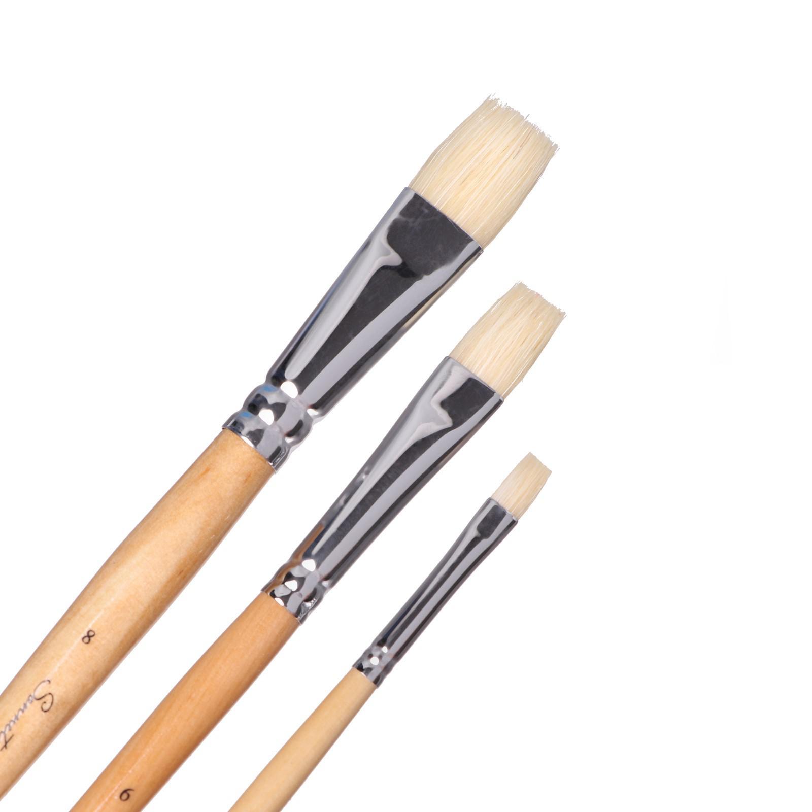 Художественные кисти Sonnet из щетины отлично подойдут для работы маслом и другими красками с плотной текстурой. Натуральный ворс из щетины обладает оптимальной жесткостью и упругостью, позволяет создавать уверенные мазки и фактурные рельефы в пастозной технике. В наборе представлено три кисти круглой и плоской формы.