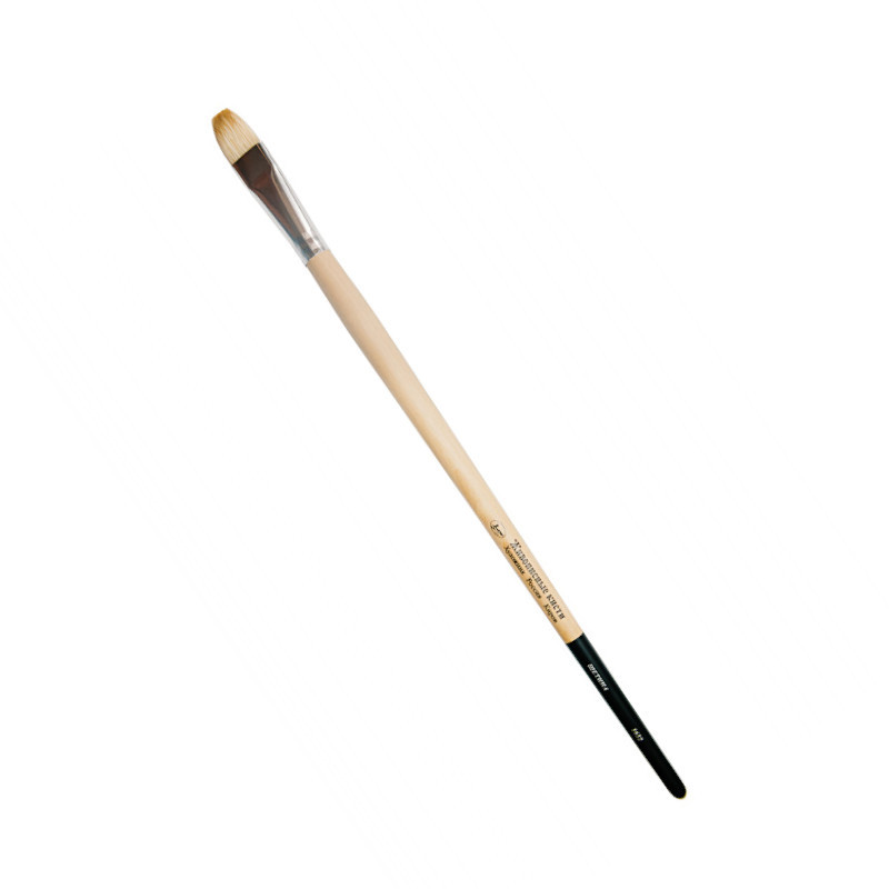 О серии: овальная кисть из волоса щетины с длинной ручкой, пропитанной лаком, является отличным инструментом для живописной работы в пастозной технике. Алюминиевая обойма надежно собирает жесткие, но очень упругие волоски, которые достаточно наполняются пигментом и хорошо отдают краску на поверхность холста. Кисть с такой формой предназначена для работы с тяжелыми и густыми материалами, как акрил или масло, удобна при изображении многоуровневых облаков, пышной кроны деревьев, округлых предметов натюрморта и портрета. В зависимости от выбранного размера можно выполнять деталировку ближнего плана, а также структурными пятнами обозначать объекты дальнего плана. Применение: для живописных работ в пастозной технике. Производство: производятся под брендом "Живописные кисти". Этот бренд известен многим художникам. Производство располагается в Кировской области на фабрике, которая работает с конца прошлого века. Производитель постоянно совершенствует технологии производства, сохраняя при этом уникальные "кировские" способы обработки ворса. "Живописные кисти" - это широкий ассортимент кистей для работы со всеми художественными красками.