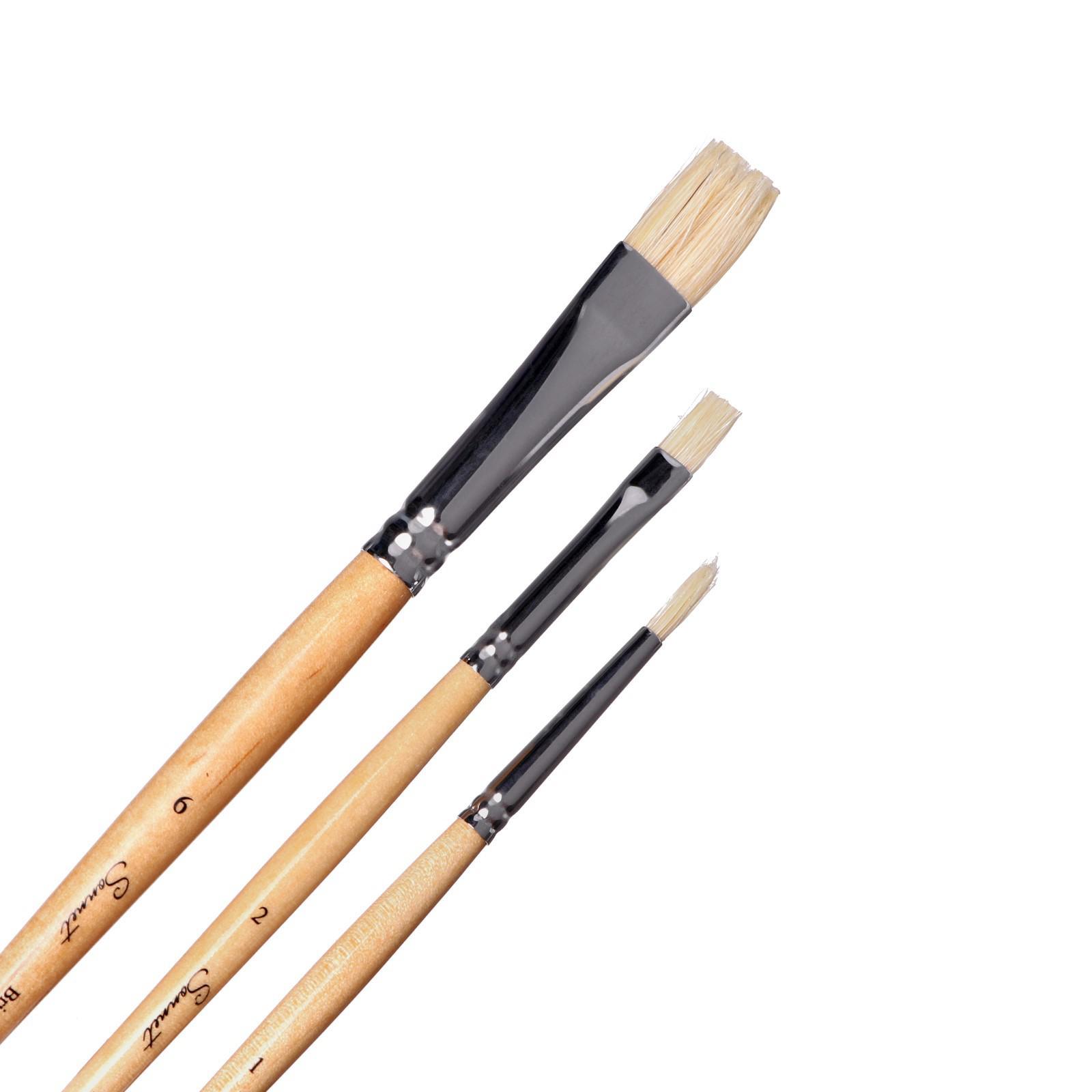 Художественные кисти Sonnet из щетины отлично подойдут для работы маслом и другими красками с плотной текстурой. Натуральный ворс из щетины обладает оптимальной жесткостью и упругостью, позволяет создавать уверенные мазки и фактурные рельефы в пастозной технике. В наборе представлено три кисти круглой и плоской формы.