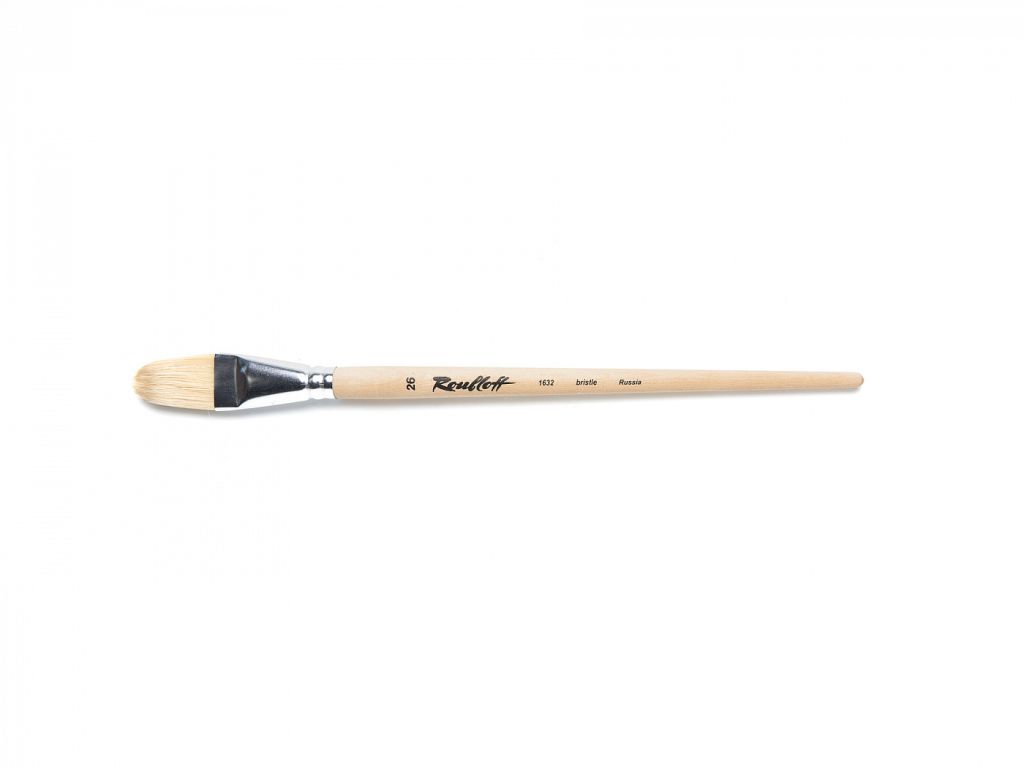 О серии: серия кистей «1632» представляет собой плоские кисти из щетины. В серии представлены кисти от №4 до №36. Характеристики: кисти серии «1632» производятся из специализированной щетины прошедшей обработку. Ворс щетины, используемый для художественных кистей, напоминают по своей форме волоски колонка. Волоски имеют одинаковый диаметр и заострены к верху. Дополнительную упругость и жесткость волоскам придает то, что они прошли дополнительную обработку и отбелены. Кисть имеет пучок формы плоского овала. Крепление ворса к черенку осуществлено за счет алюминиевой обоймы. Кисть выполнена на длиной пропитанной лаком ручке. Применение: кисти этой серии удобны для прорисовки округлых форм. Щетина позволяет набирать на кисть большее количество краски и удерживать ее, что позволяет прекрасно работать с такими материалами, как акрил и масло. Производство: изготавливаются под брендом Roubloff, который был основан в 1988 году в Кировской области (Россия). Кировская область – один из центров народных промыслов в России. Здесь же занимаются разведением пушных зверей, чей мех является идеальным материалом для кистей. Продукция бренда Roubloff – кисти самого разного назначения, размера и формы. Весь материл, используемый при производстве продукции, проходит отбор, чтобы каждый клиент получил лучшие кисти для своих работ. Кисти марки Roubloff являются одними из лучших в России.