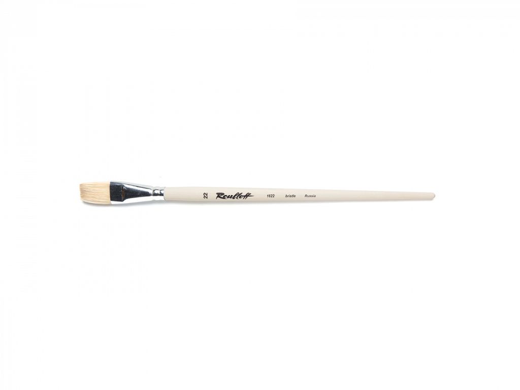 О серии: серия кистей «1622» представляет собой плоские кисти из щетины. В серии представлены кисти от №4 до №36. Характеристики: кисти серии «1622» производятся из специализированной щетины прошедшей обработку. Ворс щетины, используемый для художественных кистей, напоминают по своей форме волоски колонка. Волоски имеют одинаковый диаметр и заострены к верху. Дополнительную упругость и жесткость волоскам придает то, что они прошли дополнительную обработку и отбелены. Кисть имеет пучок плоской формы. Крепление ворса к черенку осуществлено за счет алюминиевой обоймы. Кисть выполнена на длиной пропитанной лаком ручке. Применение: кисти этой серии применяются для колеровки, нанесения фона или прорисовки фигур прямоугольных форм. Щетина позволяет набирать на кисть большее количество краски и удерживать ее, что позволяет прекрасно работать с темперой, акрилом или маслом. Производство: изготавливаются под брендом Roubloff, который был основан в 1988 году в Кировской области (Россия). Кировская область – один из центров народных промыслов в России. Здесь же занимаются разведением пушных зверей, чей мех является идеальным материалом для кистей. Продукция бренда Roubloff – кисти самого разного назначения, размера и формы. Весь материл, используемый при производстве продукции, проходит отбор, чтобы каждый клиент получил лучшие кисти для своих работ. Кисти марки Roubloff являются одними из лучших в России.