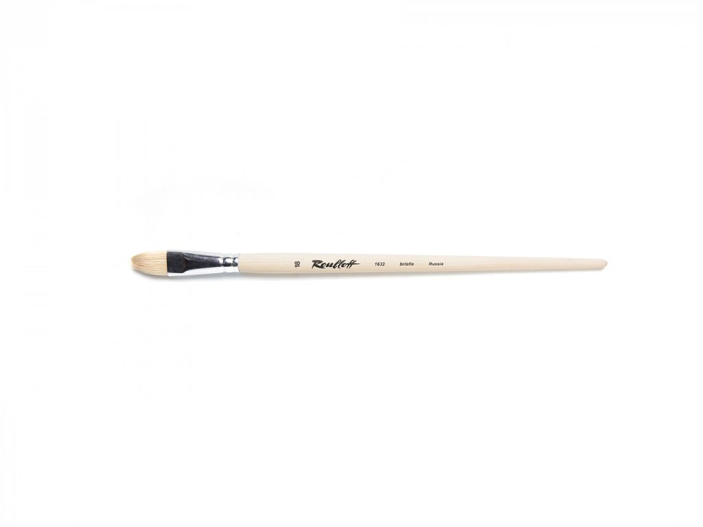 О серии: серия кистей «1632» представляет собой плоские кисти из щетины. В серии представлены кисти от №4 до №36. Характеристики: кисти серии «1632» производятся из специализированной щетины прошедшей обработку. Ворс щетины, используемый для художественных кистей, напоминают по своей форме волоски колонка. Волоски имеют одинаковый диаметр и заострены к верху. Дополнительную упругость и жесткость волоскам придает то, что они прошли дополнительную обработку и отбелены. Кисть имеет пучок формы плоского овала. Крепление ворса к черенку осуществлено за счет алюминиевой обоймы. Кисть выполнена на длиной пропитанной лаком ручке. Применение: кисти этой серии удобны для прорисовки округлых форм. Щетина позволяет набирать на кисть большее количество краски и удерживать ее, что позволяет прекрасно работать с такими материалами, как акрил и масло. Производство: изготавливаются под брендом Roubloff, который был основан в 1988 году в Кировской области (Россия). Кировская область – один из центров народных промыслов в России. Здесь же занимаются разведением пушных зверей, чей мех является идеальным материалом для кистей. Продукция бренда Roubloff – кисти самого разного назначения, размера и формы. Весь материл, используемый при производстве продукции, проходит отбор, чтобы каждый клиент получил лучшие кисти для своих работ. Кисти марки Roubloff являются одними из лучших в России.
