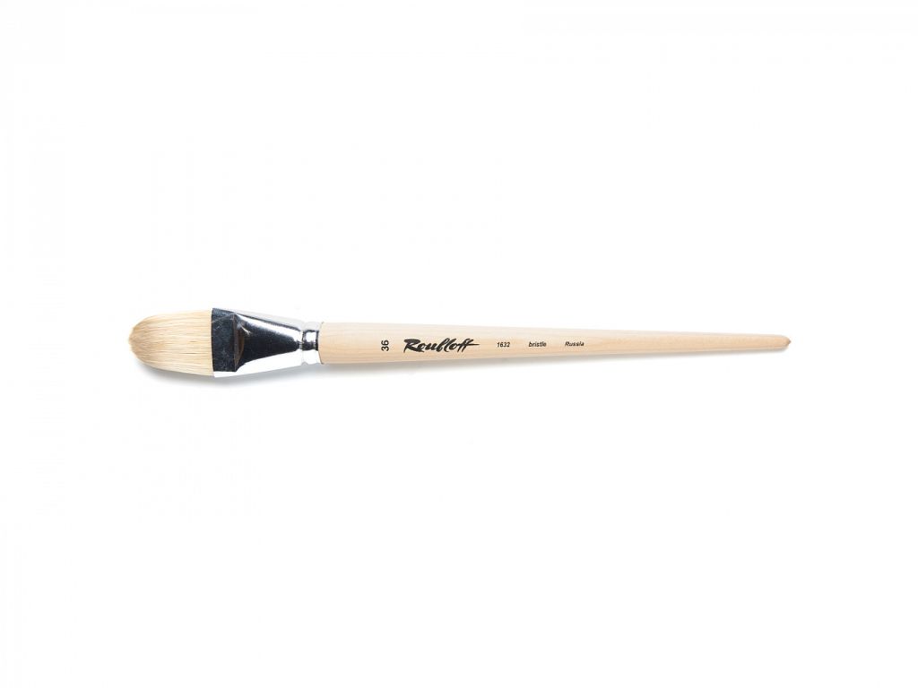О серии: серия кистей «1632» представляет собой плоские кисти из щетины. В серии представлены кисти от №4 до №36. Характеристики: кисти серии «1632» производятся из специализированной щетины прошедшей обработку. Ворс щетины, используемый для художественных кистей, напоминают по своей форме волоски колонка. Волоски имеют одинаковый диаметр и заострены к верху. Дополнительную упругость и жесткость волоскам придает то, что они прошли дополнительную обработку и отбелены. Кисть имеет пучок формы плоского овала. Крепление ворса к черенку осуществлено за счет алюминиевой обоймы. Кисть выполнена на длиной пропитанной лаком ручке. Применение: кисти этой серии удобны для прорисовки округлых форм. Щетина позволяет набирать на кисть большее количество краски и удерживать ее, что позволяет прекрасно работать с такими материалами, как акрил и масло. Производство: изготавливаются под брендом Roubloff, который был основан в 1988 году в Кировской области (Россия). Кировская область – один из центров народных промыслов в России. Здесь же занимаются разведением пушных зверей, чей мех является идеальным материалом для кистей. Продукция бренда Roubloff – кисти самого разного назначения, размера и формы. Весь материл, используемый при производстве продукции, проходит отбор, чтобы каждый клиент получил лучшие кисти для своих работ. Кисти марки Roubloff являются одними из лучших в России.