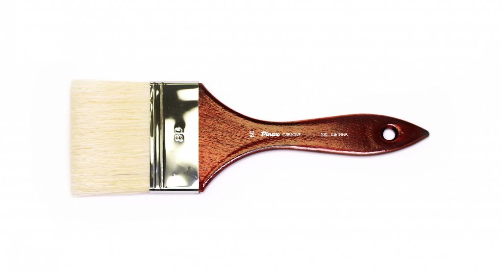 О серии: кисти серии «Creative» изготавливаются из натуральной щетины высокого качества. В серии представлены кисти следующих размеров: №30, 40, 50, 60, 80 (номер кисти равен ширине пучка). Характеристика: кисти «Creative» изготавливаются из щетины Chunking. Для формирования пучка кисти использовано большее количество расщепленных волосков, благодаря этому кисти набирают большее количество краски и с легкостью ее переносят на поверхность работы. Пучок кисти плоский и широкий. Длина ворса, в зависимости от размера кисти, варьируется от 39 до 55 миллиметров. Кисти выполнены на ручке, которая покрыта полупрозрачным глянцевым лаком. Применение: кисти этой серии подойдут для профессионального и для любительского использования. Они подходят для выполнения работ акрилом, маслом или гуашью. Кисти такой формы удобны для окрашивания больших площадей. Производство: данный товар представлен брендом Pinax. Pinax — мировой бренд товаров, который представлен на российском рынке с начала XXI века. Изначально компания производила только кисти для художественных работ, но затем расширила свое производство и не потеряв качество своей продукции начала производить холсты, мольберты и аксессуары для художников. Сейчас ассортимент включает в себя большое количество наименований.
