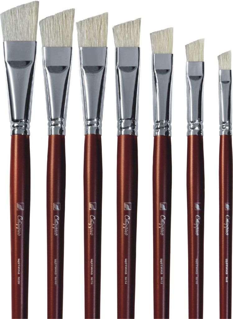 О серии: «Студо» - это серия кистей, которая производится в Новосибирске. Серия отличается наличием кистей нестандартных форм. Все кисти выпускаются поштучно и представлены широким размерным рядом. Характеристика: для производства кистей использована натуральная свиная щетина, которая прошла специальную подготовку. Пучок кистей плоский с косым срезом. Ворс закреплен цельнотянутой медной обоймой. Длинные ручки изготовлены из древесины и покрыты бордовой эмалью. Применение: кисти в основном используются для выполнения масляными красками. На усмотрение художника могут быть использованы с другими художественными материалами. Кисти такой формы позволяют создавать прямоугольные мазки и прорисовывать краем мазка острые углы и мелкие элементы работы. Производство: изготавливается компанией «Альбатрос», которая начала свою деятельность в 1989 году в городе Новосибирск. Компания хорошо зарекомендовала себя на рынке художественных товаром. Она постоянно работает над расширением своего ассортимента. Сегодня «Альбатрос» выпускает художественные кисти, холсты, ящики для красок и различные аксессуары для художников.