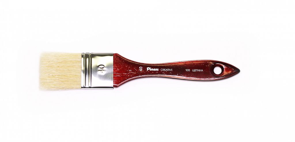О серии: кисти серии «Creative» изготавливаются из натуральной щетины высокого качества. В серии представлены кисти следующих размеров: №30, 40, 50, 60, 80 (номер кисти равен ширине пучка). Характеристика: кисти «Creative» изготавливаются из щетины Chunking. Для формирования пучка кисти использовано большее количество расщепленных волосков, благодаря этому кисти набирают большее количество краски и с легкостью ее переносят на поверхность работы. Пучок кисти плоский и широкий. Длина ворса, в зависимости от размера кисти, варьируется от 39 до 55 миллиметров. Кисти выполнены на ручке, которая покрыта полупрозрачным глянцевым лаком. Применение: кисти этой серии подойдут для профессионального и для любительского использования. Они подходят для выполнения работ акрилом, маслом или гуашью. Кисти такой формы удобны для окрашивания больших площадей. Производство: данный товар представлен брендом Pinax. Pinax — мировой бренд товаров, который представлен на российском рынке с начала XXI века. Изначально компания производила только кисти для художественных работ, но затем расширила свое производство и не потеряв качество своей продукции начала производить холсты, мольберты и аксессуары для художников. Сейчас ассортимент включает в себя большое количество наименований.