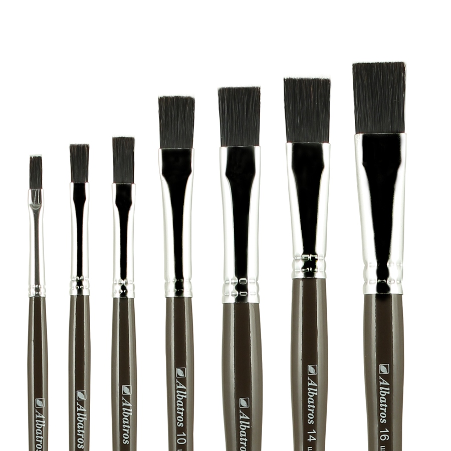 О серии: кисти серии «Художник» - это кисти для живописных работ различными красками. В зависимости от ворса рабочей части, могут применяться для работы различными материалами. Характеристика: кисти "Художник" изготавливаются из из щетины черного цвета. Такие кисти обладают оптимально упругостью и отлично подходят для работ масляными красками и акрилом. Обойма кистей цельнотянутая. Производство: изготавливается компанией «Альбатрос», которая начала свою деятельность в 1989 году в городе Новосибирск. Компания хорошо зарекомендовала себя на рынке художественных товаром. Она постоянно работает над расширением своего ассортимента. Сегодня «Альбатрос» выпускает художественные кисти, холсты, ящики для красок и различные аксессуары для художников.