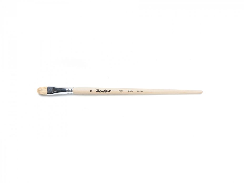 О серии: серия кистей «1632» представляет собой плоские кисти из щетины. В серии представлены кисти от №4 до №36. Характеристики: кисти серии «1632» производятся из специализированной щетины прошедшей обработку. Ворс щетины, используемый для художественных кистей, напоминают по своей форме волоски колонка. Волоски имеют одинаковый диаметр и заострены к верху. Дополнительную упругость и жесткость волоскам придает то, что они прошли дополнительную обработку и отбелены. Кисть имеет пучок формы плоского овала. Крепление ворса к черенку осуществлено за счет алюминиевой обоймы. Кисть выполнена на длиной пропитанной лаком ручке. Применение: кисти этой серии удобны для прорисовки округлых форм. Щетина позволяет набирать на кисть большее количество краски и удерживать ее, что позволяет прекрасно работать с такими материалами, как акрил и масло. Производство: изготавливаются под брендом Roubloff, который был основан в 1988 году в Кировской области (Россия). Кировская область – один из центров народных промыслов в России. Здесь же занимаются разведением пушных зверей, чей мех является идеальным материалом для кистей. Продукция бренда Roubloff – кисти самого разного назначения, размера и формы. Весь материл, используемый при производстве продукции, проходит отбор, чтобы каждый клиент получил лучшие кисти для своих работ. Кисти марки Roubloff являются одними из лучших в России.