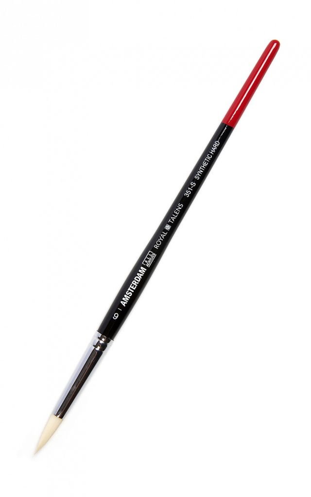 О серии: кисти Talens "Amsterdam 351" изготовлены из высококачественной белой синтетики. Синтетическое сырье делает эти кисти более прочными и долговечными. Ворс кистей очень упругий, жесткий, позволяет набирать большое количество краски. Это дает возможность писать большими, плотными мазками, а также вести тонкие четкие линии. Белый цвет волоса позволяет наиболее точно отслеживать оттенки краски. Пучок кисти закреплен медной хромированной обоймой на короткой ручке. Применение: для живописных работ акриловыми красками. На усмотрение художника могут использоваться и в других техниках с различными материалами. Производство: все кисти Royal Talens разработаны российскими художниками и произведены в России по европейским стандартам качества под контролем бренда Royal Talens.