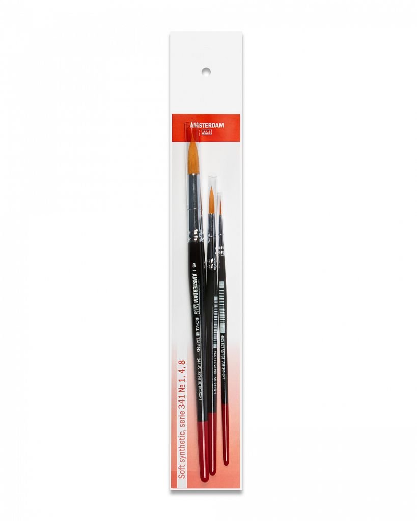 О наборе: в наборе три кисти Amsterdam 341 разных размеров. Кисти Talens Amsterdam 341 изготовлены из высококачественной мягкой рыжей синтетики. Такой ворс прекрасно держит форму, не ломается, хорошо набирает краску и легко моется под струёй воды. При соприкосновении с бумагой волоски не разъединяются и ведут чёткую линию, без «полос». Кисть из рыжей синтетики мягкая, тонкая и эластичная, мазки получаются сочными и яркими. При намокании такая кисть хорошо держит форму, что подходит для кропотливой контурной работы. Применение: для живописных работ акриловыми красками. На усмотрение художника могут использоваться и в других техниках с различными материалами. Производство: все кисти Royal Talens разработаны российскими художниками и произведены в России по европейским стандартам качества под контролем бренда Royal Talens.