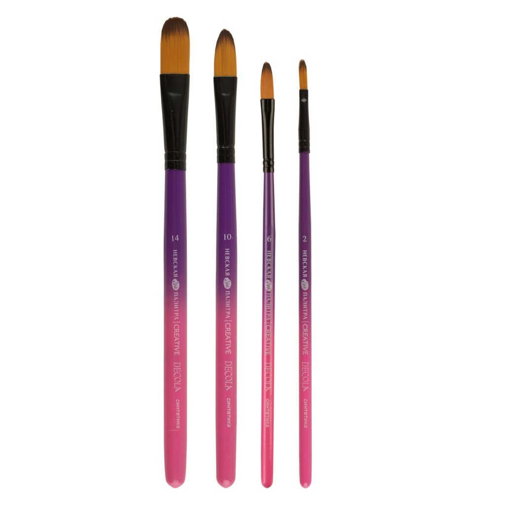 Синтетическая кисть на короткой ручке из прочного и лёгкого металла, что придаёт кисти долговечность и устойчивость. Металлическая ручка также обеспечивает удобство в использовании и позволяет художнику легко контролировать движения кисти. Это особенно важно при выполнении тонких и детальных работ. Ворс кистей сделан из синтетики и имеет ряд преимуществ перед натуральным, включая устойчивость к химическим воздействиям, долговечность и возможность использования с широким спектром красок. Кисти с овальной формой пучка представлены в разных размерах, в ярком дизайне. Кисти подходят для работы с различными типами красок, включая акрил, масло, акварель и гуашь. Благодаря своей универсальности, она подойдёт как начинающими, так и опытным художникам.