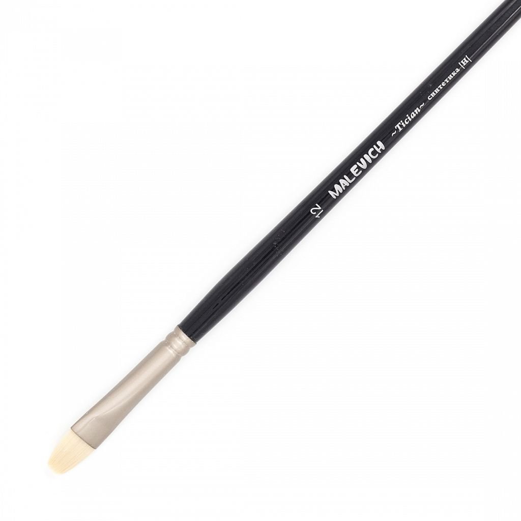Кисти серии Tician изготовлены из жесткой синтетики белого цвета имитирующей щетину. Этот ворс отлично подходит для густых красок таких как масло, акрил, гуашь, темпера. Кисти выполнены в благородной цветовой гамме. Матовая втулка с теплым металлическим оттенком, черный лак и лаконичная маркировка делают эти кисти не только надежным художественным инструментом, но и красивым аксессуаром. Кисть держит свою форму даже при частом использовании, ворс прочно закреплен, а втулка не расшатывается со временем. Ручка кисти длинная - 25 см. Длина ворса (выставка) короткая. Номер кисти соответствует диаметру пучка в миллиметрах.