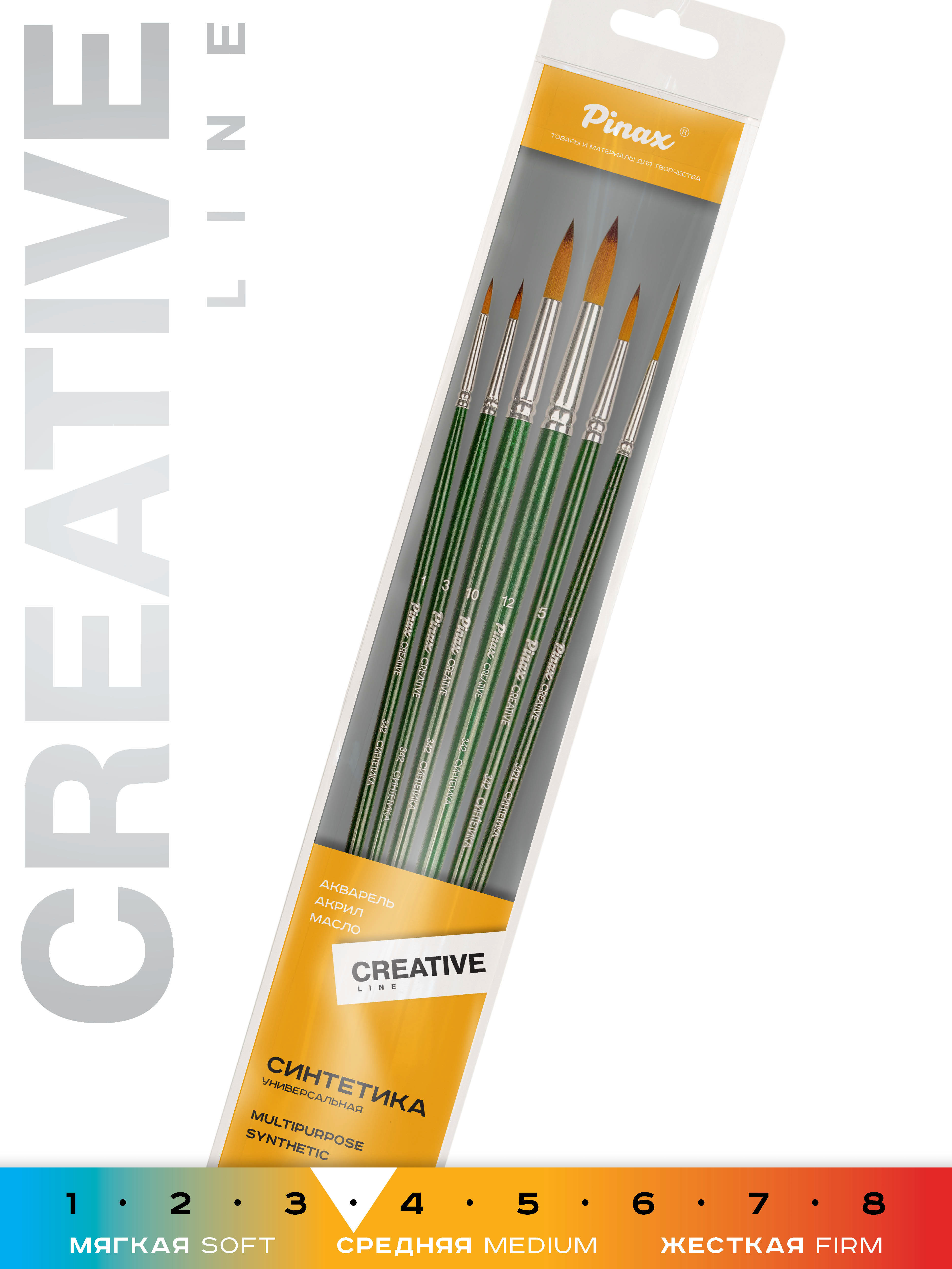 О наборе: в наборе 6 кистей с пучком круглой формы разных размеров. Характеристика: кисти этой серии изготавливаются из высококачественной синтетики золотисто-оранжевого цвета (Golden Taklon). Волос таких кистей имеет среднюю жесткость и хорошо держит свою форму. Кисти изготовлены на длинной деревянной ручке, покрытой полупрозрачным лаком зеленого цвета. Крепление ворса к черенку кисти выполнено за счет алюминиевой втулки. Применение: кисти этой серии универсальны в своем применении. Они подходят для художников всех уровней и могут использоваться для работы разными художественными красками и лаками. Производство: данный товар представлен брендом Pinax. Pinax — мировой бренд товаров, который представлен на российском рынке с начала XXI века. Изначально компания производила только кисти для художественных работ, но затем расширила свое производство и не потеряв качество своей продукции начала производить холсты, мольберты и аксессуары для художников. Сейчас ассортимент включает в себя большое количество наименований.