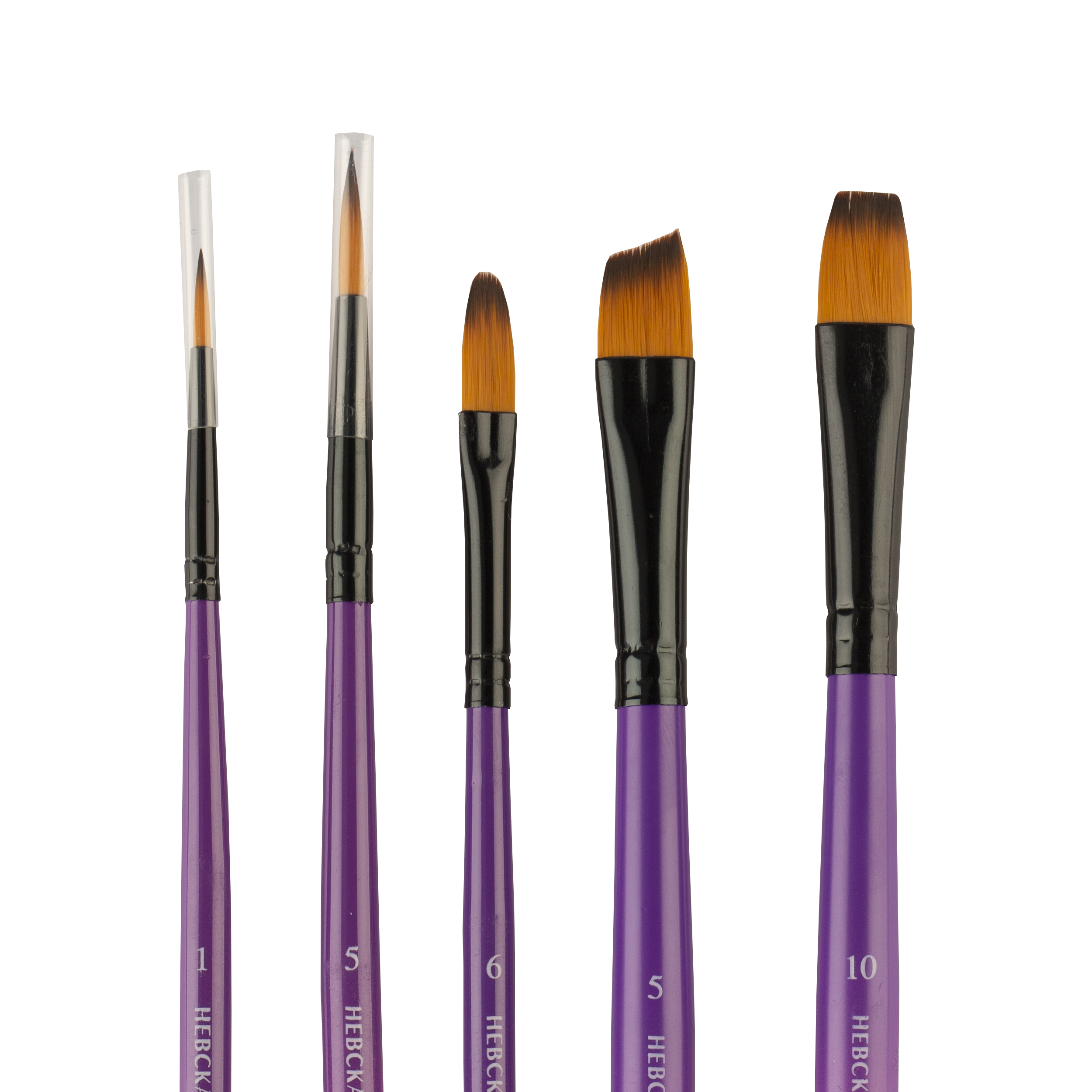 Синтетические кисти Decola с металлической ручкой из прочного и лёгкого металла, что придает кисти долговечность и устойчивость. Металлическая ручка также обеспечивает удобство в использовании и позволяет художнику легко контролировать движения кисти. Это особенно важно при выполнении тонких и детальных работ. Ворс кистей сделан из синтетики и имеет преимуществ перед натуральным, включая устойчивость к химическим воздействиям, долговечность и возможность использования с широким спектром красок. Кисти подходят для работы с различными типами красок, включая акрил, масло, водные краски и гуашь. Состав набора: № 1, 5 круглая, короткая ручка; № 10 плоская, короткая ручка; № 5 скошенная, короткая ручка; № 6 овальная, короткая ручка.