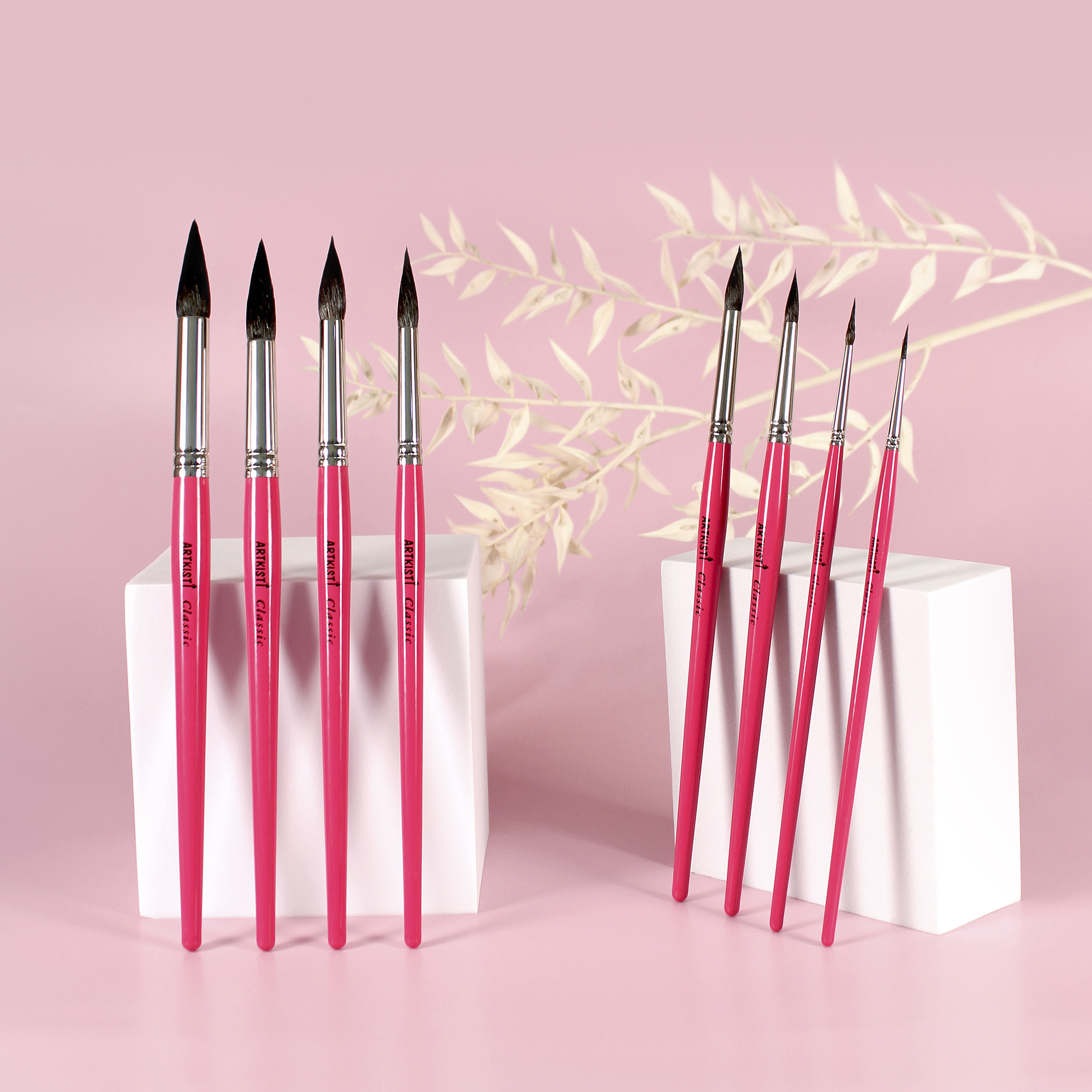 Характеристика: для производства кистей этой серии использован натуральный ворс черной сибирской белки 50% и черной синтетики 50%. Кисти из такого материала мягкие и эластичные. Кисти изготовлены с круглым пучком, который заострен к кончику. Пучок кисти надежно зафиксирован цельнотянутой металлической обоймой. Кисти выполнены на короткой деревянной ручке. Диаметр мазка соответствует номеру кисти. Применение: кисти этой серии используются в основном для выполнения работ в техниках акварельной живописи. На усмотрение художника возможно использование с другими художественными материалами. Производство: изготавливается компанией «Альбатрос», которая начала свою деятельность в 1989 году в городе Новосибирск. Компания хорошо зарекомендовала себя на рынке художественных товаром. Она постоянно работает над расширением своего ассортимента. Сегодня «Альбатрос» выпускает художественные кисти, холсты, ящики для красок и различные аксессуары для художников.