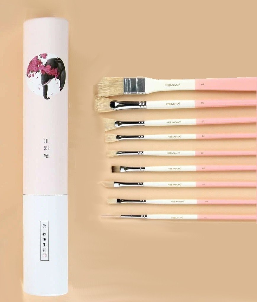 Набор кистей для рисования, выполненных из натуральной щетины и синтетических волокон высокого качества и в пенале-тубусе. Отличный подарок начинающим и профессиональным художникам. Кисти имеют среднюю жёсткость, хорошо держат форму — отлично подходят для густых красок, таких, как гуашь, масляные краски, темпера, акрил. Плоские кисти идеальны для покрытия цветом больших площадей работы или рисования геометрическими мазками. Такие кисти широко применяются для заливки цветом фона, декоративно-прикладного творчества, грунтования поверхностей или покрывания лаком. Также в наборе есть плоские кисти с короткой выставкой. Укороченный ворс позволяет кисти быть более упругой и художнику легче контролировать ход мазка. Тонкой контурной кистью удобно прорисовывать детали картины, в том числе достаточно мелкие. Отводная (ретушная) кисть — это плоская кисточки со скосом. Позволяют рисовать красивые мазки или проводить ярко выраженные линии. Плоские веерные кисти идеальны для градиентов и растушевок. Ими также удобно покрывать цветом фон или создавать фактуру на поверхности. Кисть флейц плоская и очень широкая. В живописи такую кисть применяют для рисования на больших полотнах, создания геометрических фактурных мазков или покрытия уже готовой работы лаком. Широко используется при декоративных и оформительских работах. Каждая кисть выполнена из высококачественного ворса и натуральной щетины, который даёт кистям необходимую упругость и эластичность. Кисти имеют длинную деревянную ручку, благодаря чему удобно рисовать на мольберте, крепление ворса выполнено бесшовной металлической втулкой, что надёжно закрепляет ворс кисти.