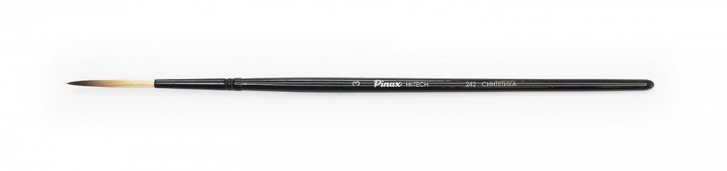 О серии: кисти серии «Pinax Artists HI-TECH» изготавливаются из специальной синтетики высокого качества. Кисти данной серии выпускаются поштучно следующих размеров: №1, 3, 5. Характеристика: для изготовления кистей серии «Pinax Artists HI-TECH» используется южнокорейская синтетика. Волос изготовленный из такой синтетики по своим характеристикам имитирует колонковый ворс. Кисти износостойки и устойчивы к воздействию химических растворителей. Пучок кисти обладает очень длинным ворсом. Длина ворса, в зависимости от размера кисти, варьируется от 28 до 36 миллиметров. Кисти выполнены на короткой глянцевой деревянной ручке. На ручку нанесен орнамент, который визуально напоминает карбон покрытый лаком. Втулка хромированная медная. Применение: кисти такой формы изольются для работы с любыми жидкими красками. Кисти подходят для использования любителями и профессионалами во всех техниках живописи. Кисти удобны для выполнения надписей и орнаментов. Производство: данный товар представлен брендом Pinax. Pinax — мировой бренд товаров, который представлен на российском рынке с начала XXI века. Изначально компания производила только кисти для художественных работ, но затем расширила свое производство и не потеряв качество своей продукции начала производить холсты, мольберты и аксессуары для художников. Сейчас ассортимент включает в себя большое количество наименований.