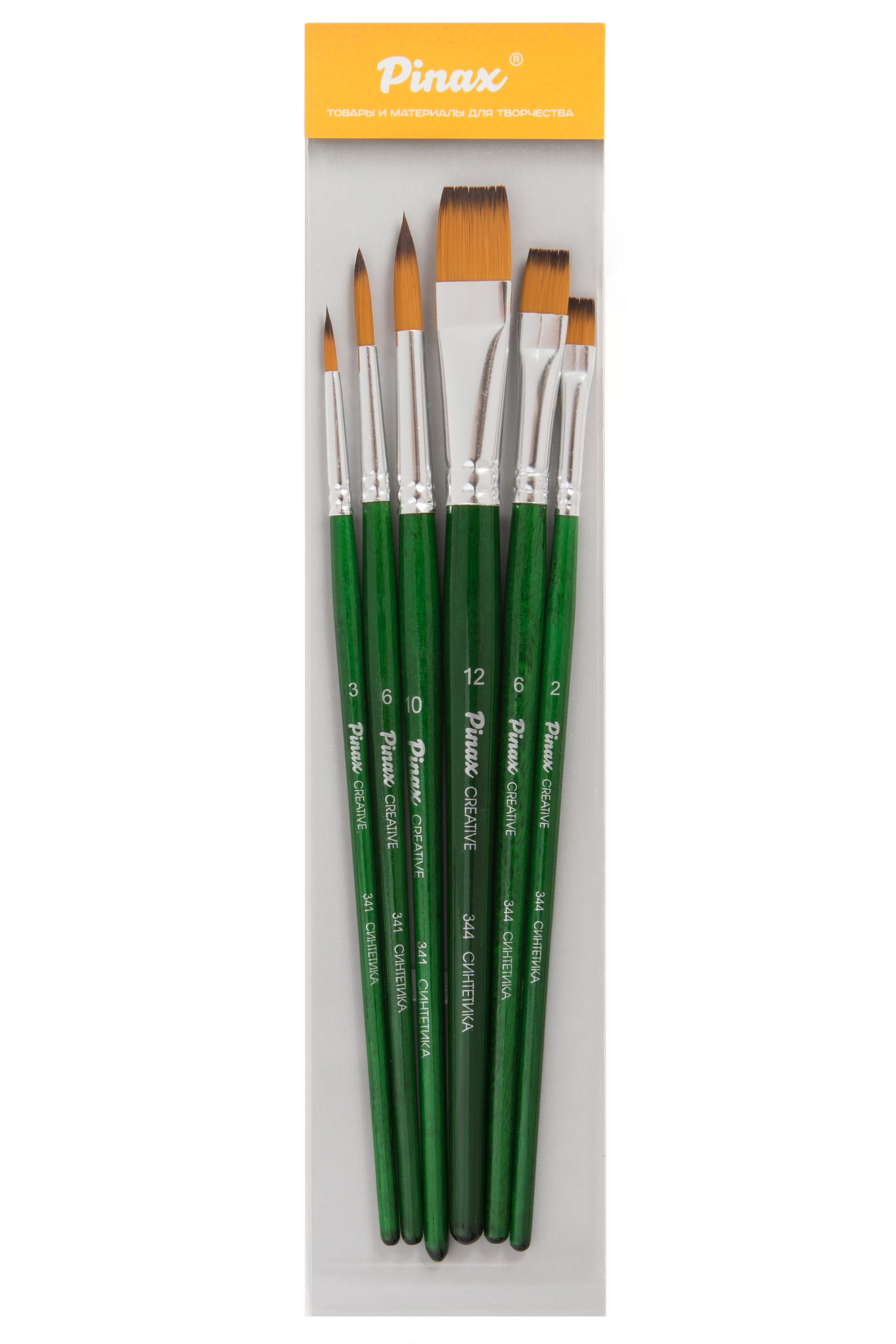 Комплектация: в данный набор вошли кисти серии «Creative», которые изготовлены из синтетики. В набор входит 6 кистей (круглые №3, 6, 10 и плоские №2, 6, 12). Характеристика: кисти этой серии изготавливаются из высококачественной синтетики золотисто-оранжевого цвета (Golden Taklon). Волос таких кистей имеет среднюю жесткость и хорошо держит свою форму. Кисти изготовлены на короткой деревянной ручке, покрытой полупрозрачным лаком зеленого цвета. Крепление ворса к черенку кисти выполнено за счет алюминиевой втулки. Применение: кисти этой серии универсальны в своем применении. Они подходят для художников всех уровней и могут использоваться для работы разными художественными красками и лаками. Производство: данный товар представлен брендом Pinax. Pinax — мировой бренд товаров, который представлен на российском рынке с начала XXI века. Изначально компания производила только кисти для художественных работ, но затем расширила свое производство и не потеряв качество своей продукции начала производить холсты, мольберты и аксессуары для художников. Сейчас ассортимент включает в себя большое количество наименований.