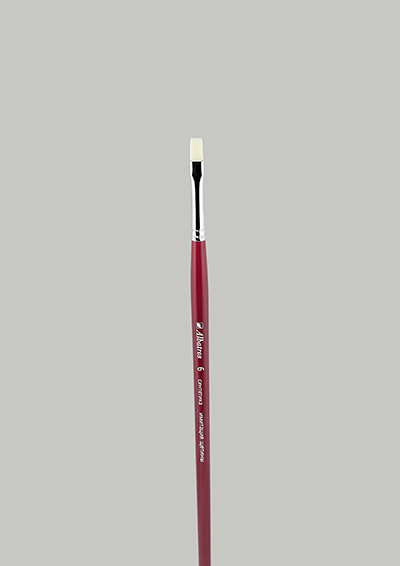 О серии: данная серия представлена кистями из синтетики, ворс которой имитирует ворс щетины. Характеристика: для производства данных кистей использован упругий синтетический волос. Кисти из такого материала отличаются средней жесткостью и упругостью. Пучок кистей плоской формы. Номер кисти соответствует ширине пучка (в миллиметрах). Пучок кисти крепится к черенку алюминиевой цельнотянутой обоймой. Кисть выполнена на удлиненной лакированной ручке. Применение: кисти из такого материала практически универсальны в применении. Подходят для плотных густых красок. Удобны для нанесения структурных мазков. Производство: изготавливается компанией «Альбатрос», которая начала свою деятельность в 1989 году в городе Новосибирск. Компания хорошо зарекомендовала себя на рынке художественных товаром. Она постоянно работает над расширением своего ассортимента. Сегодня «Альбатрос» выпускает художественные кисти, холсты, ящики для красок и различные аксессуары для художников.