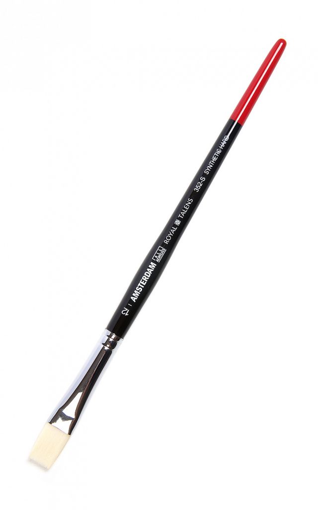 О серии: кисти Talens "Amsterdam 352" изготовлены из высококачественной белой синтетики. Синтетическое сырье делает эти кисти более прочными и долговечными. Ворс кистей очень упругий, жесткий, позволяет набирать большое количество краски. Это дает возможность писать большими, плотными мазками, а также вести тонкие четкие линии. Белый цвет волоса позволяет наиболее точно отслеживать оттенки краски. Пучок кисти закреплен медной хромированной обоймой на короткой ручке. Применение: для живописных работ акриловыми красками. На усмотрение художника могут использоваться и в других техниках с различными материалами. Производство: все кисти Royal Talens разработаны российскими художниками и произведены в России по европейским стандартам качества под контролем бренда Royal Talens.