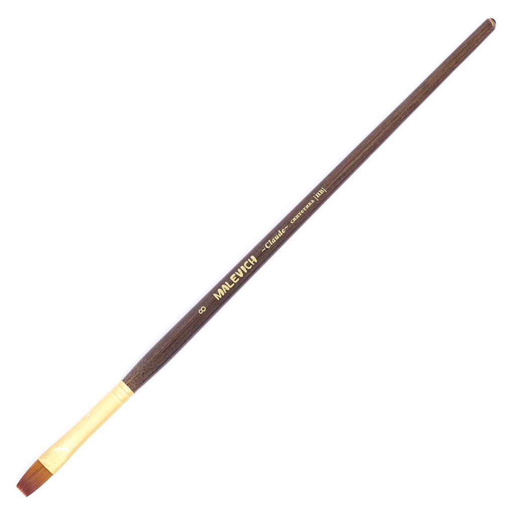 Кисти серии "Claude" ("Клод") от компании "Малевичъ" изготовлены из синтетики золотистого цвета (Shining golden synthetic), имитирующей колонковый волос. Золотистая синтетика это - ворс средней жесткости, который отлично подходит для густых красок: для масла, акрила, гуаши, темперы. Кисти выполнены в благородной цветовой гамме: матовая золотая втулка, коричневый прозрачный лак и лаконичная маркировка делают эти кисти не только надежным художественным инструментом, но и красивым аксессуаром. Кисть держит свою форму даже при частом использовании, ворс прочно закреплен, а втулка не расшатывается со временем. Ручка - оптимальной средней длины (18см). Выставка (длина ворса) - короткая. Номер кисти соответствует диаметру обоймы в миллиметрах.