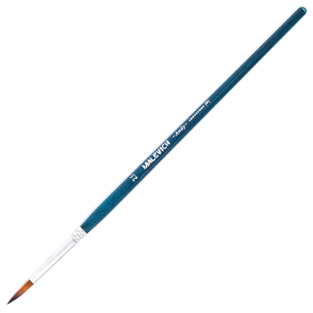 Кисти из синтетики серии "Andy" ("Энди") от компании "Малевичъ" это - мягкая универсальная синтетика, которая подходит практически для любых видов красок. Этими кистями удобно работать с гуашью, акварелью, акрилом, темперой. Они также подходят для работы масляными красками в лессировочной технике с разбавителем. Синтетический ворс - рыжего цвета с темным кончиком. Ручки кистей покрыты зеленовато-синим лаком. Ворс закреплен аллюминиевой втулкой с двойным обжимом. Привлекательный внешний вид дополняет удобная лаконичная маркировка. Ручка - короткая (14см). Выставка (длина ворса) - короткая. Номер кисти соответствует диаметру обоймы в миллиметрах.
