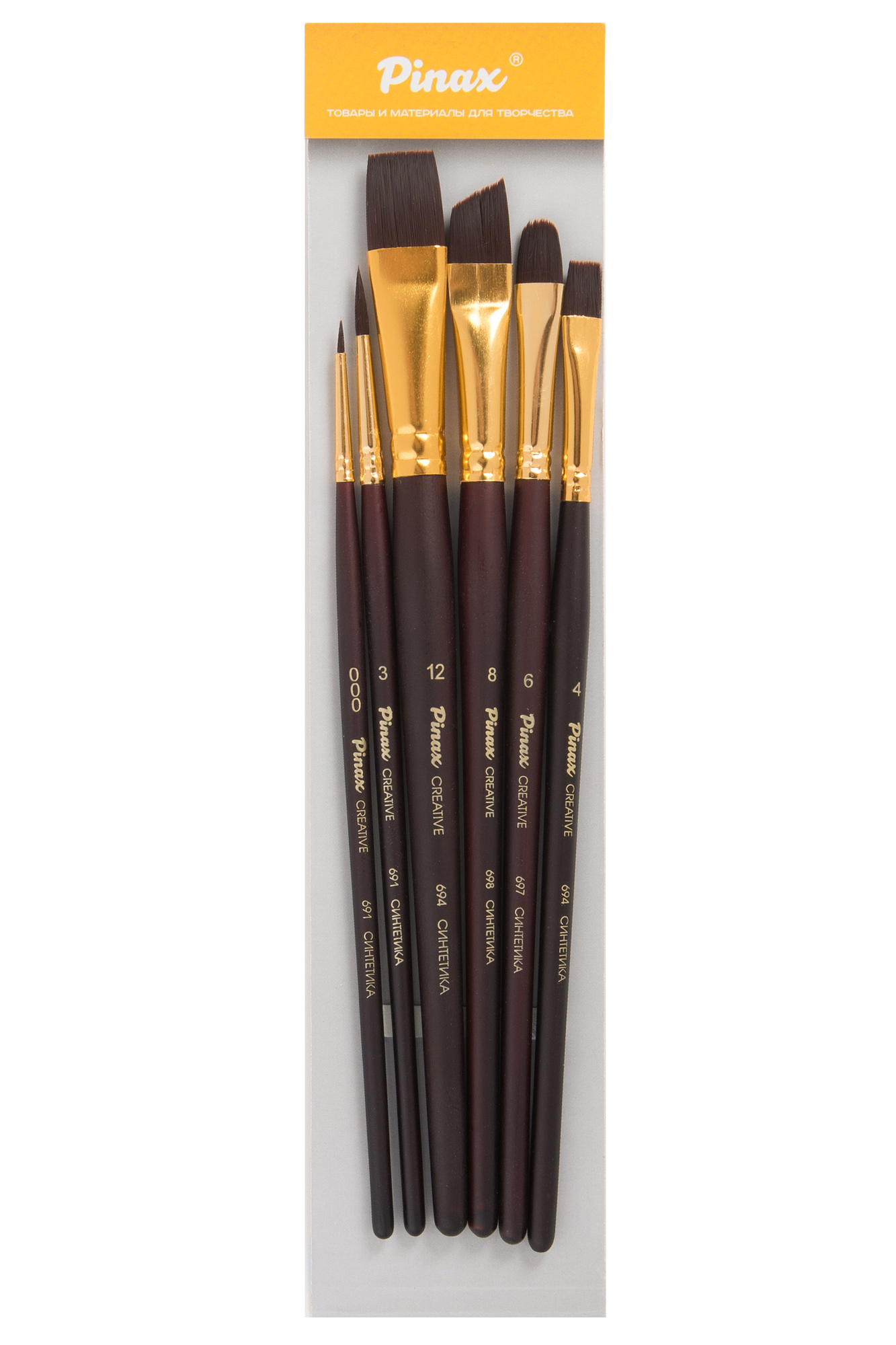 Комплектация: в данный набор вошли кисти серии «Creative», которые изготовлены из жесткой синтетики. В набор входит 6 кистей (круглые №000, 3; плоские №4, 12; овальная №6, скошенная №8). Блистерная упаковка. Характеристика: кисти этой серии изготавливаются из жесткой синтетики бордового цвета. Волос таких кистей достаточно жесткий и упругий. Фактура волосков и форма кисти позволяет набирать большое количество краски. Кисти изготовлены на короткой деревянной ручке, покрытой матовым лаком. Применение: кисти этой серии универсальны в своем применении. Они подходят для художников всех уровней и могут использоваться для работы разными художественными красками и лаками. Производство: данный товар представлен брендом Pinax. Pinax — мировой бренд товаров, который представлен на российском рынке с начала XXI века. Изначально компания производила только кисти для художественных работ, но затем расширила свое производство и не потеряв качество своей продукции начала производить холсты, мольберты и аксессуары для художников. Сейчас ассортимент включает в себя большое количество наименований.