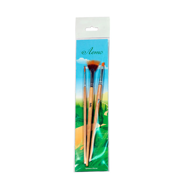 Комплектация: набор кистей «Лето» укомплектован нейлоновыми кистями (круглая №3, веерная №6, плоская скошенная №6). Упаковка полиэтиленовая. Характеристика: для производства кистей, входящих в набор, использовано качественное нейлоновое (синтетическое) волокно. Кисти из такого материала обладают средней упругостью. Ворс хорошо держит форму. Пучок кистей крепится к черенку алюминиевой цельнотянутой обоймой. Кисти выполнены на укороченной лакированной ручке. Применение: кисти практически универсальны в применении. Подходят для детского творчества и хобби. Удобны для рисования летних пейзажей. Производство: изготавливается компанией «Альбатрос», которая начала свою деятельность в 1989 году в городе Новосибирск. Компания хорошо зарекомендовала себя на рынке художественных товаром. Она постоянно работает над расширением своего ассортимента. Сегодня «Альбатрос» выпускает художественные кисти, холсты, ящики для красок и различные аксессуары для художников.