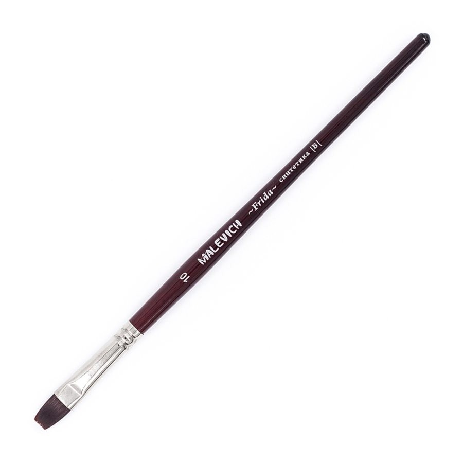 Синтетические нейлоновые кисти серии "Frida" от Малевичъ - это кисти с мягким эластичным ворсом. Имеют плоскую форму и острый кончик, который долго не стирается. Подходят для акварели и гуаши, хороши для академической техники живописи и лессировок, хорошо держат воду. По свойствам напоминают натуральную белку. Латунная обойма с антикоррозийным покрытием и двойным обжимом. Березовая ручка длиной 18см покрыта глянцевым темно-красным лаком. Длина ворса (выставка) короткая. Номер кисти соответствует диаметру в мм.
