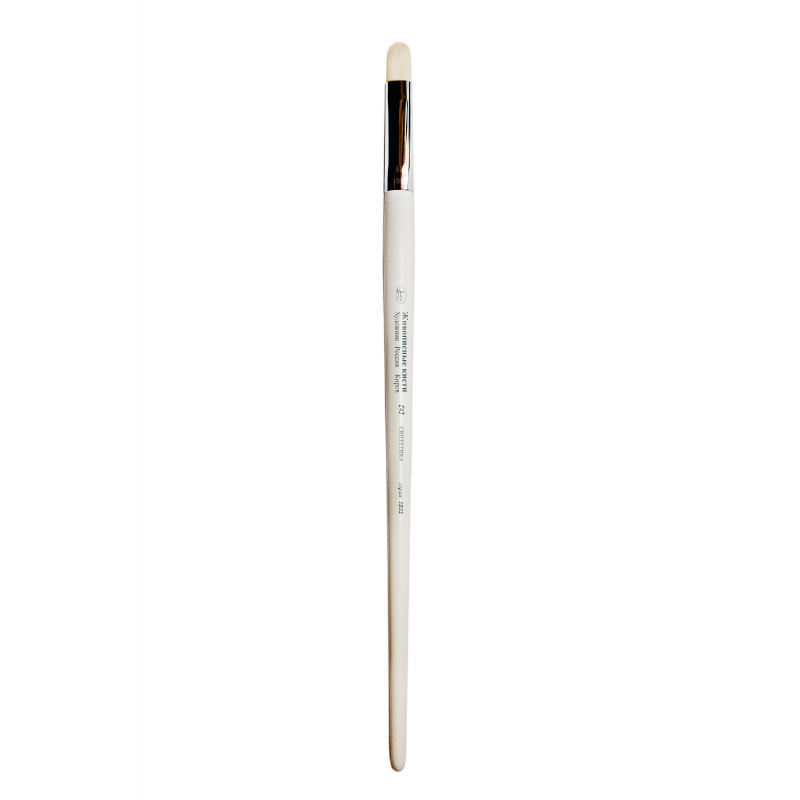О серии: овальная кисть из белого синтетического ворса прекрасно располагается в руке за счет сбалансированной длины. Хромированная медная обойма надежно защищает ворсинки изделия и прочно скрепляет с белой глянцевой ручкой. Такой цвет волоса позволяет более точно отслеживать чистоту оттенка краски, что увеличивает качество работы с точки зрения колористики, а новый подход к технологии создания синтетики увеличил эластичность и упругость материала. Форма пучка идеально подходит для написания округлых объектов натюрморта, лепестков цветов, пышных многоуровневых облаков и для проработки фактуры окружающей среды. Применение: кисти этой серии применяются для работы масляными и акриловыми красками. Производство: производятся под брендом "Живописные кисти". Этот бренд известен многим художникам. Производство располагается в Кировской области на фабрике, которая работает с конца прошлого века. Производитель постоянно совершенствует технологии производства, сохраняя при этом уникальные "кировские" способы обработки ворса. "Живописные кисти" - это широкий ассортимент кистей для работы со всеми художественными красками.