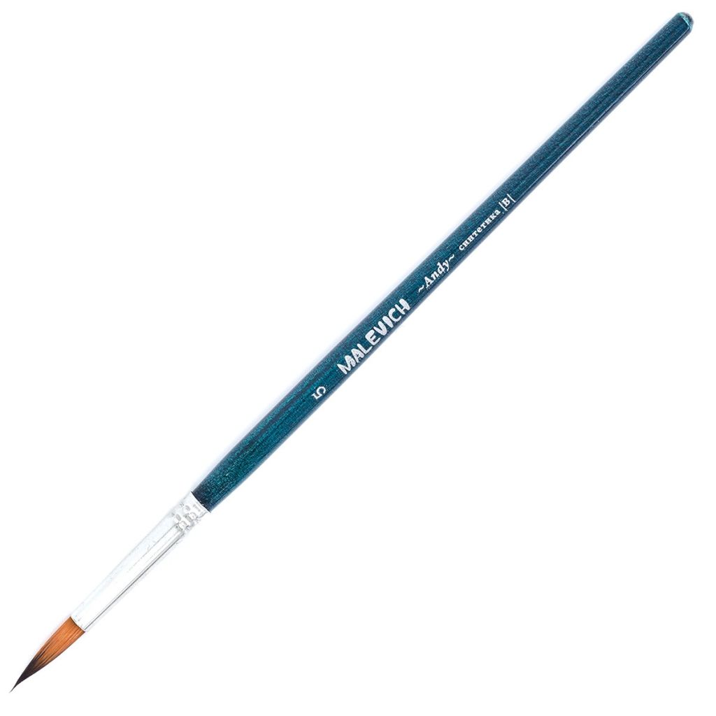 Кисти из синтетики серии "Andy" ("Энди") от компании "Малевичъ" это - мягкая универсальная синтетика, которая подходит практически для любых видов красок. Этими кистями удобно работать с гуашью, акварелью, акрилом, темперой. Они также подходят для работы масляными красками в лессировочной технике с разбавителем. Синтетический ворс - рыжего цвета с темным кончиком. Ручки кистей покрыты зеленовато-синим лаком. Ворс закреплен аллюминиевой втулкой с двойным обжимом. Привлекательный внешний вид дополняет удобная лаконичная маркировка. Ручка - короткая (14см). Выставка (длина ворса) - короткая. Номер кисти соответствует диаметру обоймы в миллиметрах.
