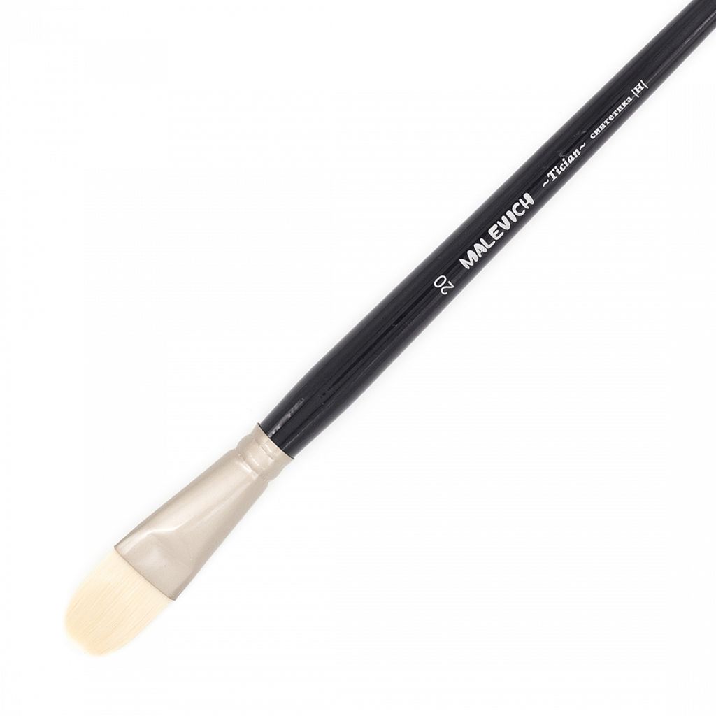 Кисти серии Tician изготовлены из жесткой синтетики белого цвета имитирующей щетину. Этот ворс отлично подходит для густых красок таких как масло, акрил, гуашь, темпера. Кисти выполнены в благородной цветовой гамме. Матовая втулка с теплым металлическим оттенком, черный лак и лаконичная маркировка делают эти кисти не только надежным художественным инструментом, но и красивым аксессуаром. Кисть держит свою форму даже при частом использовании, ворс прочно закреплен, а втулка не расшатывается со временем. Ручка кисти длинная - 25 см. Длина ворса (выставка) короткая. Номер кисти соответствует диаметру пучка в миллиметрах.