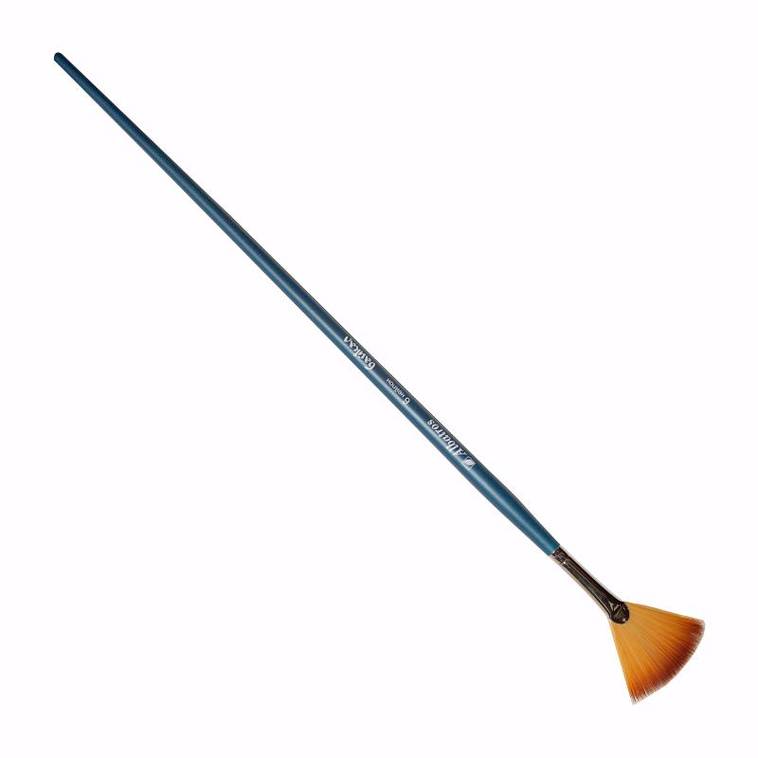 О серии: в серию кистей «Байкал» входят художественные кисти из таких материалов, как волос белки и колонка, выбеленная щетина, синтетика. Серия получила название в честь самого глубокого озера на планете. Все кисти выпускаются поштучно и представлены широким размерным рядом. Характеристика: кисти изготовлены из специализированной синтетики. Кисти из такого материала обладают средней жесткостью, эластичные. При намокании кисти не теряют своих свойств и хорошо держит форму. Пучок выполнен в оригинальной форме, которая визуально напоминает веер. Ворс кисти надежно крепится к черенку цельнотянутой обоймой. Ручки кистей длинные, покрыты эмалью синего цвета. Применение: синтетические кисти «Байкал» универсальны в своем применении. Подходят для живописных работ и для декорирования. Кисти такой формы используются для придания специальных эффектов в живописи. При помощи такой кисти художнику будет легче прорисовать предметы в движении, шерсть животных, траву.