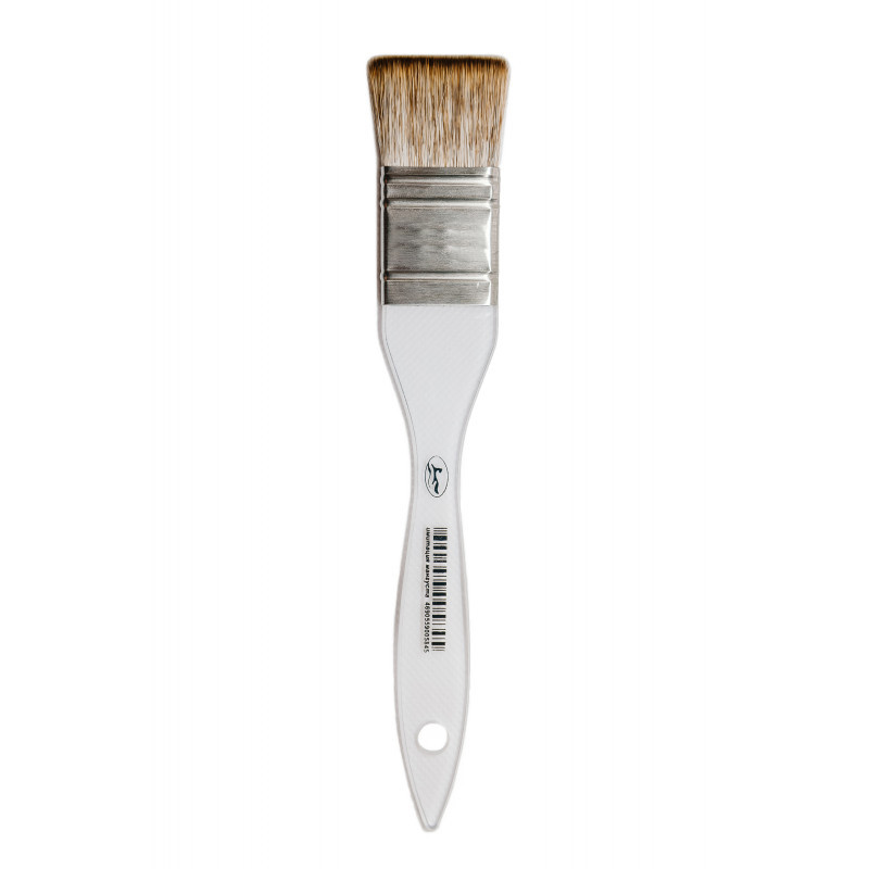О серии: плоская кисть-флейц из синтетики, имитирующей волос мангуста, имеет более жесткую структуру, чем волос белки, но более мягкую, чем свиная щетина; применима для работы с такими красками, как акрил, гуашь, темпера, тушь и акварель. Такая кисть является незаменимым инструментом для увлажнения бумаги крупного формата, для заливки однородным или градиентным тоном. Ворс хорошо впитывает влагу и также хорошо отдает ее на полотно, что позволяет наносить широкий слой краски одним мазком и добиваться интересной формы пятна лишь поворотом руки. Также, используя край самой ручки, можно добиться необычной фактуры бумаги в декоративной или абстрактной живописи. Применение: для живописных работ в различных техниках. Производство: производятся под брендом "Живописные кисти". Этот бренд известен многим художникам. Производство располагается в Кировской области на фабрике, которая работает с конца прошлого века. Производитель постоянно совершенствует технологии производства, сохраняя при этом уникальные "кировские" способы обработки ворса. "Живописные кисти" - это широкий ассортимент кистей для работы со всеми художественными красками.