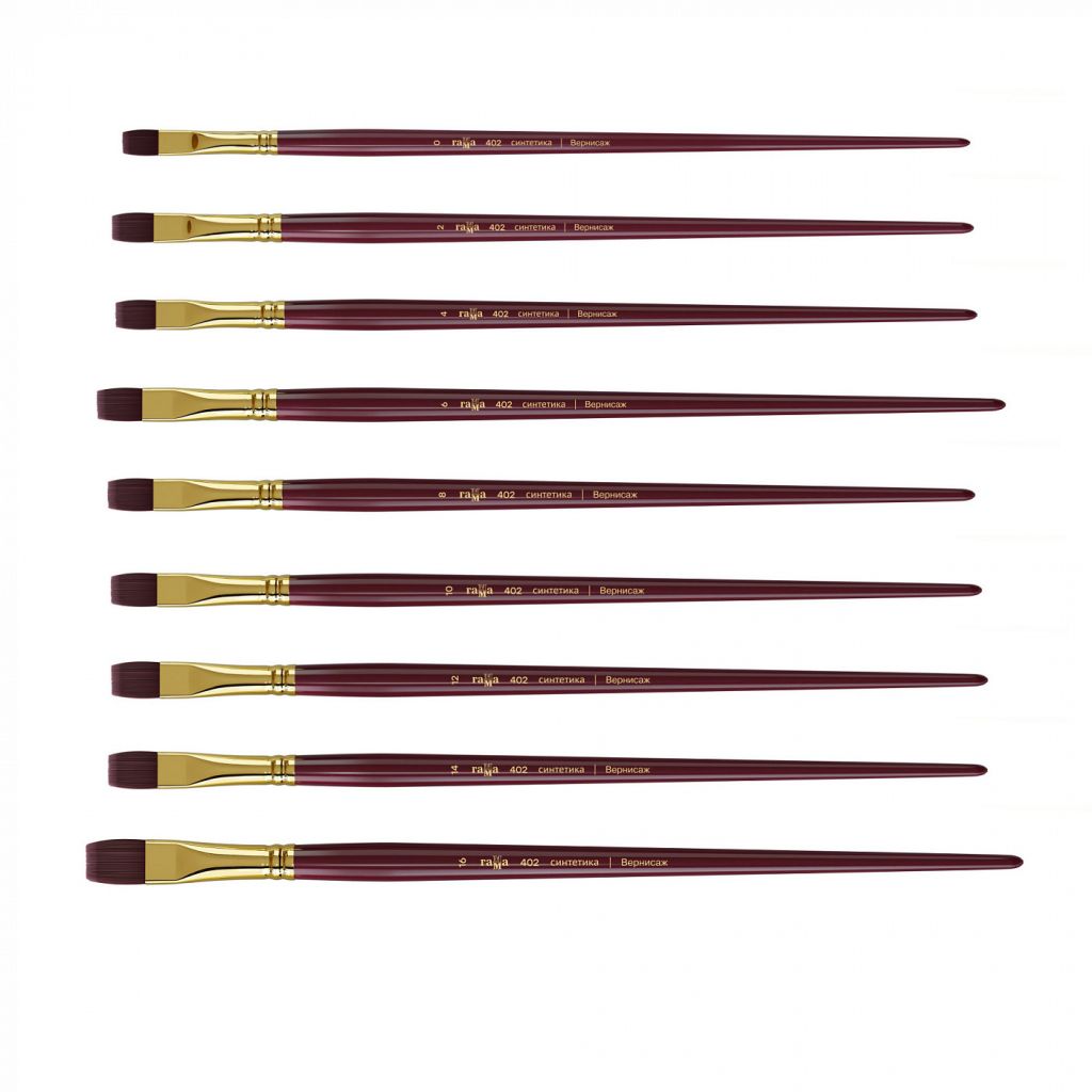 Кисть средней жесткости из высококачественного синтетического ворса бордового цвета. Пучок проклеен химически-стойким клеем и надежно прикреплен к древку кисти. Кисть на длинной ручке, покрытой глянцевым лаком насыщенного бордового цвета, совпадающим с цветом ворса. Тончайший синтетический ворс хорошо набирает и отдает краску, при этом отлично держит форму, сочетая упругость с удивительно тонким чувством мазка. Кисть подходит для работы с акриловыми и масляными красками, а так же другими материалами для живописи и декорирования.