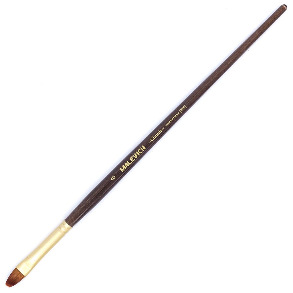 Кисти серии "Claude" ("Клод") от компании "Малевичъ" изготовлены из синтетики золотистого цвета (Shining golden synthetic), имитирующей колонковый волос. Золотистая синтетика это - ворс средней жесткости, который отлично подходит для густых красок: для масла, акрила, гуаши, темперы. Кисти выполнены в благородной цветовой гамме: матовая золотая втулка, коричневый прозрачный лак и лаконичная маркировка делают эти кисти не только надежным художественным инструментом, но и красивым аксессуаром. Кисть держит свою форму даже при частом использовании, ворс прочно закреплен, а втулка не расшатывается со временем. Ручка - оптимальной средней длины (18см). Выставка (длина ворса) - короткая. Номер кисти соответствует диаметру обоймы в миллиметрах.