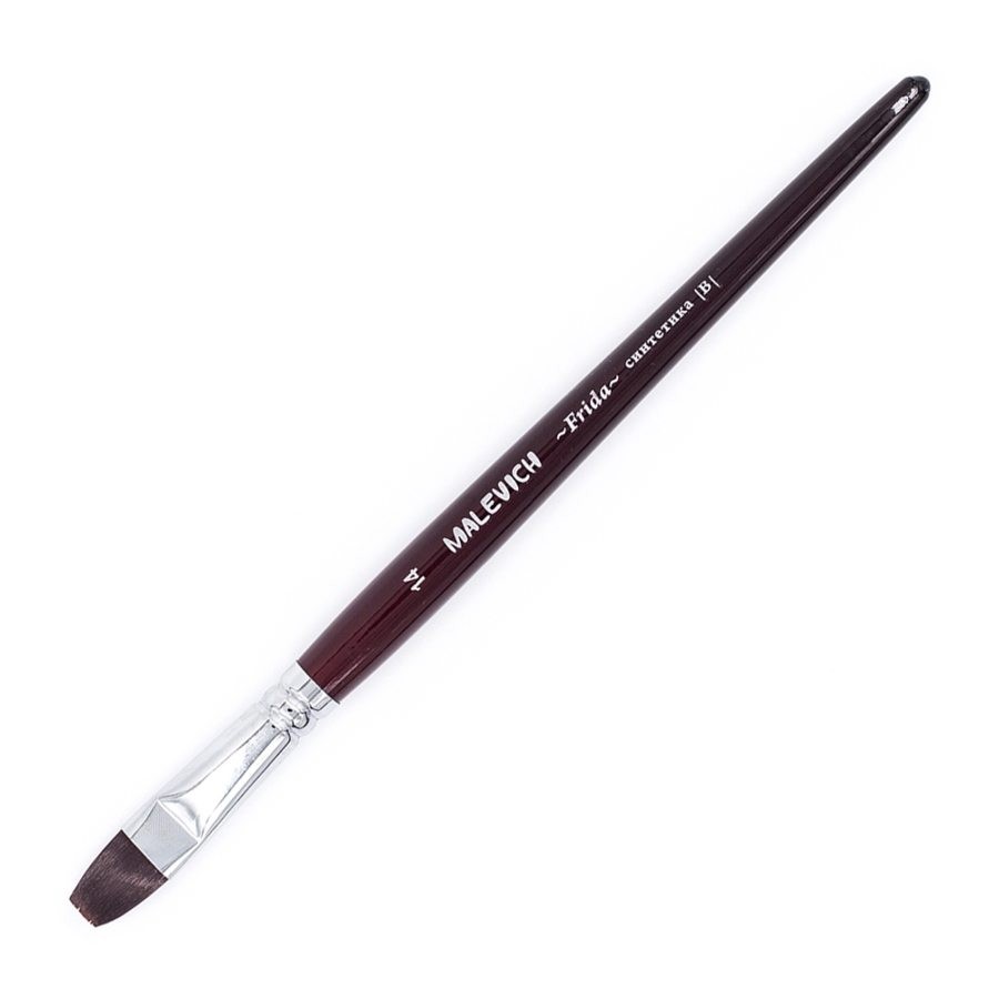 Синтетические нейлоновые кисти серии "Frida" от Малевичъ - это кисти с мягким эластичным ворсом. Имеют плоскую форму и острый кончик, который долго не стирается. Подходят для акварели и гуаши, хороши для академической техники живописи и лессировок, хорошо держат воду. По свойствам напоминают натуральную белку. Латунная обойма с антикоррозийным покрытием и двойным обжимом. Березовая ручка длиной 18см покрыта глянцевым темно-красным лаком. Длина ворса (выставка) короткая. Номер кисти соответствует диаметру в мм.