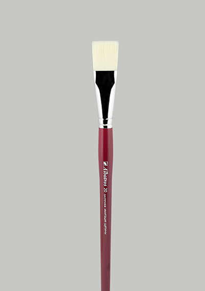 О серии: данная серия представлена кистями из синтетики, ворс которой имитирует ворс щетины. Характеристика: для производства данных кистей использован упругий синтетический волос. Кисти из такого материала отличаются средней жесткостью и упругостью. Пучок кистей плоской формы. Номер кисти соответствует ширине пучка (в миллиметрах). Пучок кисти крепится к черенку алюминиевой цельнотянутой обоймой. Кисть выполнена на удлиненной лакированной ручке. Применение: кисти из такого материала практически универсальны в применении. Подходят для плотных густых красок. Удобны для нанесения структурных мазков. Производство: изготавливается компанией «Альбатрос», которая начала свою деятельность в 1989 году в городе Новосибирск. Компания хорошо зарекомендовала себя на рынке художественных товаром. Она постоянно работает над расширением своего ассортимента. Сегодня «Альбатрос» выпускает художественные кисти, холсты, ящики для красок и различные аксессуары для художников.