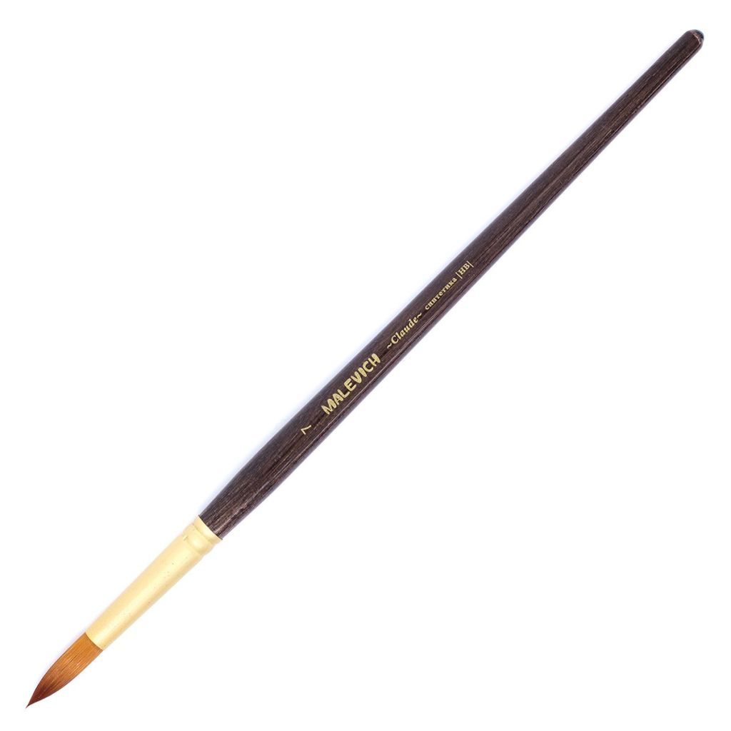 Кисти серии "Claude" ("Клод") от компании "Малевичъ" изготовлены из синтетики золотистого цвета (Shining golden synthetic), имитирующей колонковый волос. Золотистая синтетика это - ворс средней жесткости, который отлично подходит для густых красок: для масла, акрила, гуаши, темперы. Кисти выполнены в благородной цветовой гамме: матовая золотая втулка, коричневый прозрачный лак и лаконичная маркировка делают эти кисти не только надежным художественным инструментом, но и красивым аксессуаром. Кисть держит свою форму даже при частом использовании, ворс прочно закреплен, а втулка не расшатывается со временем. Ручка - оптимальной средней длины (18см). Выставка (длина ворса) - короткая. Номер кисти соответствует диаметру обоймы в миллиметрах.