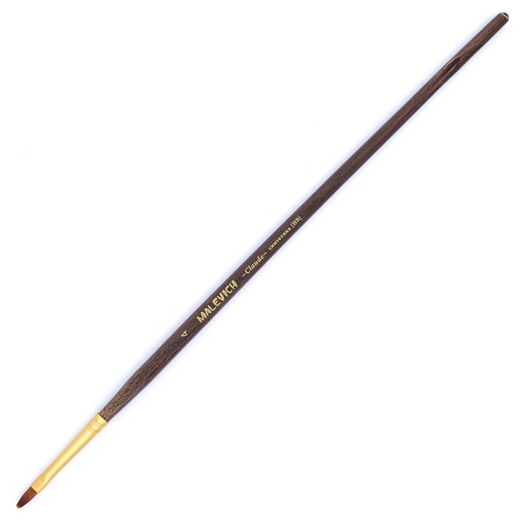 Кисти серии "Claude" ("Клод") от компании "Малевичъ" изготовлены из синтетики золотистого цвета (Shining golden synthetic), имитирующей колонковый волос. Золотистая синтетика это - ворс средней жесткости, который отлично подходит для густых красок: для масла, акрила, гуаши, темперы. Кисти выполнены в благородной цветовой гамме: матовая золотая втулка, коричневый прозрачный лак и лаконичная маркировка делают эти кисти не только надежным художественным инструментом, но и красивым аксессуаром. Кисть держит свою форму даже при частом использовании, ворс прочно закреплен, а втулка не расшатывается со временем. Ручка - оптимальной средней длины (18см). Выставка (длина ворса) - короткая. Номер кисти соответствует диаметру обоймы в миллиметрах.
