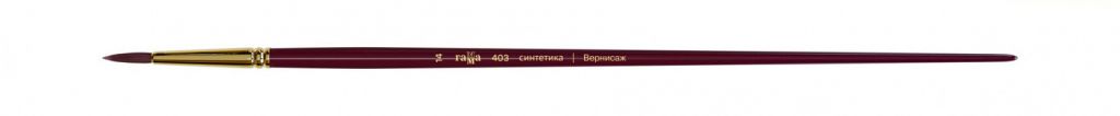 Кисть средней жесткости из высококачественного синтетического ворса бордового цвета. Пучок проклеен химически-стойким клеем и надежно прикреплен к древку кисти. Кисть на длинной ручке, покрытой глянцевым лаком насыщенного бордового цвета, совпадающим с цветом ворса. Тончайший синтетический ворс хорошо набирает и отдает краску, при этом отлично держит форму, сочетая упругость с удивительно тонким чувством мазка. Кисть подходит для работы с акриловыми и масляными красками, а так же другими материалами для живописи и декорирования.