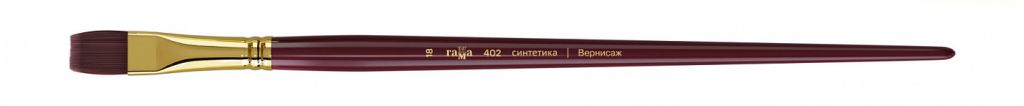 Кисть средней жесткости из высококачественного синтетического ворса бордового цвета. Пучок проклеен химически-стойким клеем и надежно прикреплен к древку кисти. Кисть на длинной ручке, покрытой глянцевым лаком насыщенного бордового цвета, совпадающим с цветом ворса. Тончайший синтетический ворс хорошо набирает и отдает краску, при этом отлично держит форму, сочетая упругость с удивительно тонким чувством мазка. Кисть подходит для работы с акриловыми и масляными красками, а так же другими материалами для живописи и декорирования.