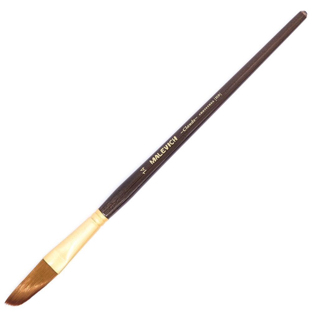 Кисти серии "Claude" ("Клод") от компании "Малевичъ" изготовлены из синтетики золотистого цвета (Shining golden synthetic), имитирующей колонковый волос. Золотистая синтетика это - ворс средней жесткости, который отлично подходит для густых красок: для масла, акрила, гуаши, темперы. Кисти выполнены в благородной цветовой гамме: матовая золотая втулка, коричневый прозрачный лак и лаконичная маркировка делают эти кисти не только надежным художественным инструментом, но и красивым аксессуаром. Кисть держит свою форму даже при частом использовании, ворс прочно закреплен, а втулка не расшатывается со временем. Ручка - оптимальной средней длины (18см). Выставка (длина ворса) - короткая. Номер кисти соответствует диаметру обоймы в миллиметрах.
