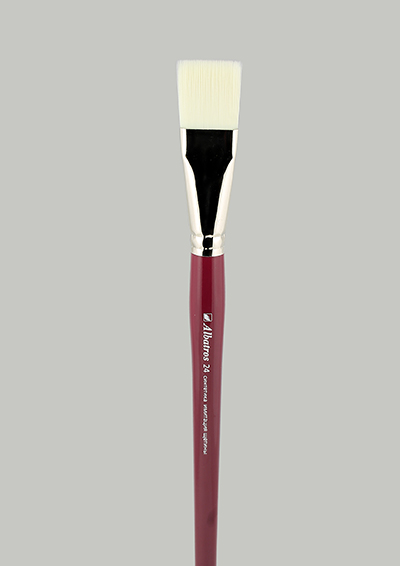 О серии: данная серия представлена кистями из синтетики, ворс которой имитирует ворс щетины. Характеристика: для производства данных кистей использован упругий синтетический волос. Кисти из такого материала отличаются средней жесткостью и упругостью. Пучок кистей плоской формы. Номер кисти соответствует ширине пучка (в миллиметрах). Пучок кисти крепится к черенку алюминиевой цельнотянутой обоймой. Кисть выполнена на удлиненной лакированной ручке. Применение: кисти из такого материала практически универсальны в применении. Подходят для плотных густых красок. Удобны для нанесения структурных мазков. Производство: изготавливается компанией «Альбатрос», которая начала свою деятельность в 1989 году в городе Новосибирск. Компания хорошо зарекомендовала себя на рынке художественных товаром. Она постоянно работает над расширением своего ассортимента. Сегодня «Альбатрос» выпускает художественные кисти, холсты, ящики для красок и различные аксессуары для художников.