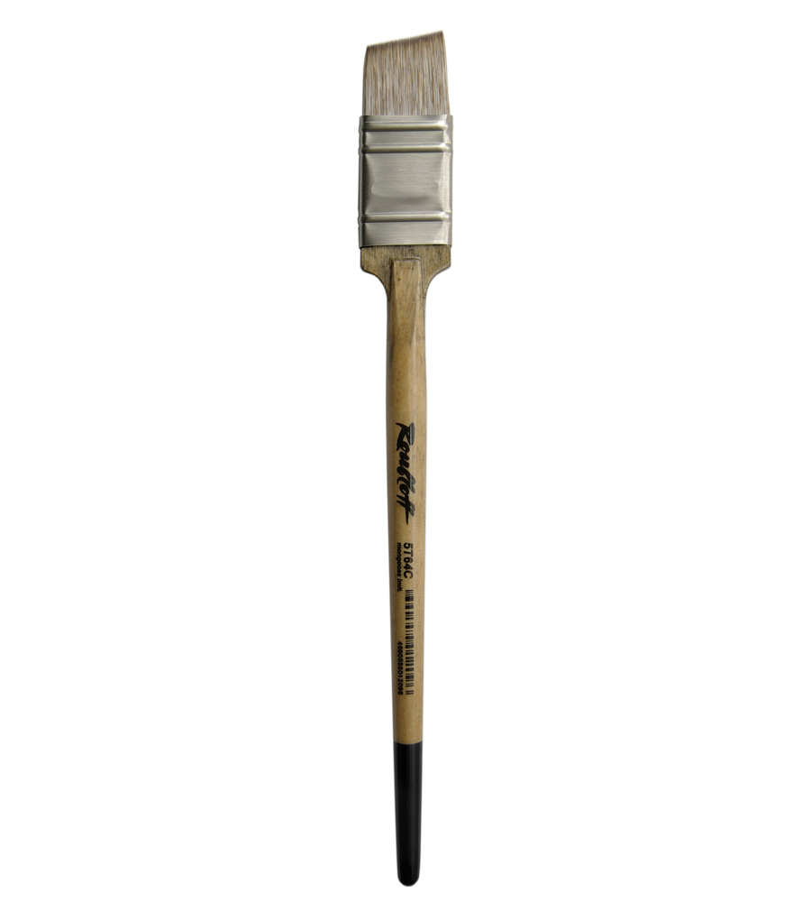Наклонная кисть-флейц из синтетики, имитирующей волос мангуста, имеет более жёсткую структуру, чем волос белки, но более мягкую, чем свиная щетина; применима для работы с такими красками, как акрил, гуашь, темпера, тушь и акварель. Такая кисть является незаменимым инструментом для увлажнения бумаги крупного формата, для заливки однородным или градиентным тоном. Ворс хорошо впитывает влагу и также хорошо отдаёт её на полотно, что позволяет наносить широкий слой краски одним мазком и добиваться интересной формы пятна лишь поворотом руки. Новая лёгкая круглая ручка удобна в работе, позволяет создавать живописные и декоративные мазки путём вращения, что расширяет возможности художника в реализации его творческих замыслов.