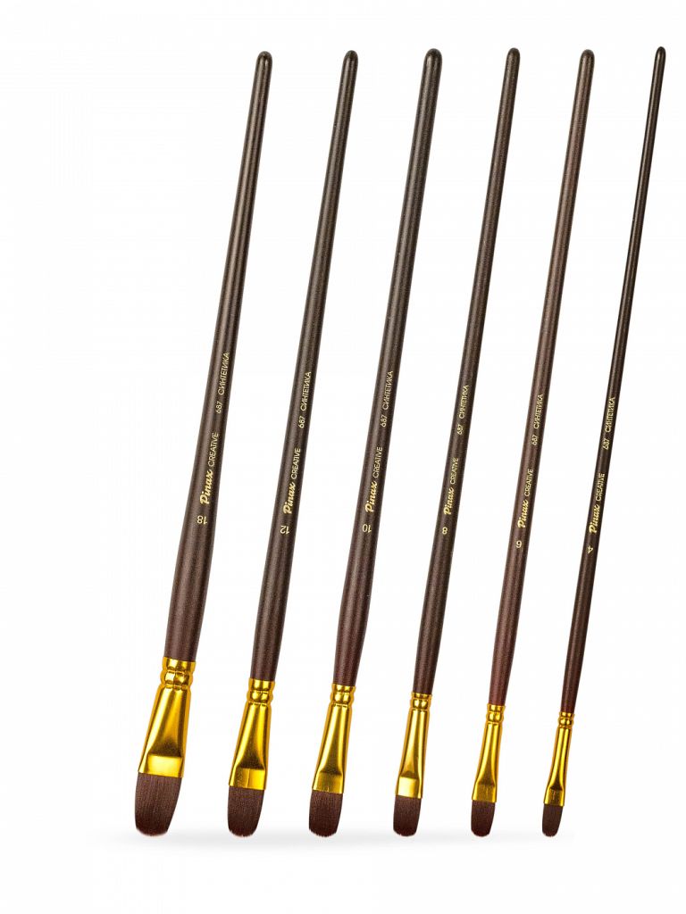 О наборе: в наборе 6 кистей с овальной формой пучка разных размеров. Кисти изготавливаются из жесткой синтетики, подходят для акрила и масла, отлично сохраняют форму при работе с тяжелыми красками. Кисти этой серии подходят как для любителей, так и для профессионалов. Характеристика: для производства кистей серии CREATIVE используются специально подобранные материалы. Кисти изготавливаются на короткой ручке из березы, покрытой краской и глянцевым лаком. Для крепления ворса к ручке использованы металлические втулки с двойным обжимом. Применение: кисти серии подходят для декоративно-оформительского творчества и хобби. Предназначены для масла и акрила, так же могут быть использованы в работе с акварелью. Производство: данный товар представлен брендом Pinax. Pinax — мировой бренд товаров, который представлен на российском рынке с начала XXI века. Изначально компания производила только кисти для художественных работ, но затем расширила свое производство и не потеряв качество своей продукции начала производить холсты, мольберты и аксессуары для художников. Сейчас ассортимент включает в себя большое количество наименований.