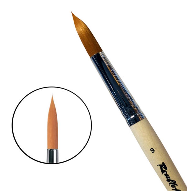 О серии: кисти серии «1210» изготавливаются из мягкой синтетики рыжего цвета. Размерный ряд представлен кистями от №00 до №10. Характеристика: кисти серии «1210» изготавливаются из специально разработанной мягкой синтетики рыжего цвета. Такой ворс подходит для работы с жидкими красками. Свойства кисти позволяют набирать и удерживать большое количество краски. Пучок кисти имеет круглую форму с заостренным кончиком. Крепление пучка к древку кисти выполнено медной хромированной обоймой. Кисть изготовлена на короткой ручке пропитанной лаком. Применение: кисти подходят для работы с жидкими красами и для нанесения лаков. На усмотрение художника кисти можно использовать в других техниках живописи. Производство: изготавливаются под брендом Roubloff, который был основан в 1988 году в Кировской области (Россия). Кировская область – один из центров народных промыслов в России. Здесь же занимаются разведением пушных зверей, чей мех является идеальным материалом для кистей. Продукция бренда Roubloff – кисти самого разного назначения, размера и формы. Весь материл, используемый при производстве продукции, проходит отбор, чтобы каждый клиент получил лучшие кисти для своих работ. Кисти марки Roubloff являются одними из лучших в России.