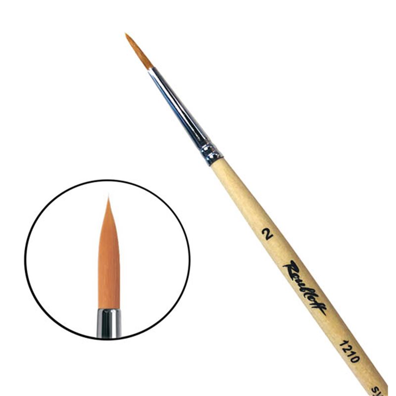 О серии: кисти серии «1210» изготавливаются из мягкой синтетики рыжего цвета. Размерный ряд представлен кистями от №00 до №10. Характеристика: кисти серии «1210» изготавливаются из специально разработанной мягкой синтетики рыжего цвета. Такой ворс подходит для работы с жидкими красками. Свойства кисти позволяют набирать и удерживать большое количество краски. Пучок кисти имеет круглую форму с заостренным кончиком. Крепление пучка к древку кисти выполнено медной хромированной обоймой. Кисть изготовлена на короткой ручке пропитанной лаком. Применение: кисти подходят для работы с жидкими красами и для нанесения лаков. На усмотрение художника кисти можно использовать в других техниках живописи. Производство: изготавливаются под брендом Roubloff, который был основан в 1988 году в Кировской области (Россия). Кировская область – один из центров народных промыслов в России. Здесь же занимаются разведением пушных зверей, чей мех является идеальным материалом для кистей. Продукция бренда Roubloff – кисти самого разного назначения, размера и формы. Весь материл, используемый при производстве продукции, проходит отбор, чтобы каждый клиент получил лучшие кисти для своих работ. Кисти марки Roubloff являются одними из лучших в России.