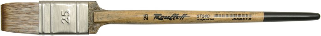 Плоская кисть-флейц из синтетики, имитирующей волос мангуста, имеет более жёсткую структуру, чем волос белки, но более мягкую, чем свиная щетина; применима для работы с такими красками, как акрил, гуашь, темпера, тушь и акварель. Такая кисть является незаменимым инструментом для увлажнения бумаги крупного формата, для заливки однородным или градиентным тоном. Ворс хорошо впитывает влагу и также хорошо отдаёт её на полотно, что позволяет наносить широкий слой краски одним мазком и добиваться интересной формы пятна лишь поворотом руки. Новая лёгкая круглая ручка удобна в работе, позволяет создавать живописные и декоративные мазки путём вращения, что расширяет возможности художника в реализации его творческих замыслов.